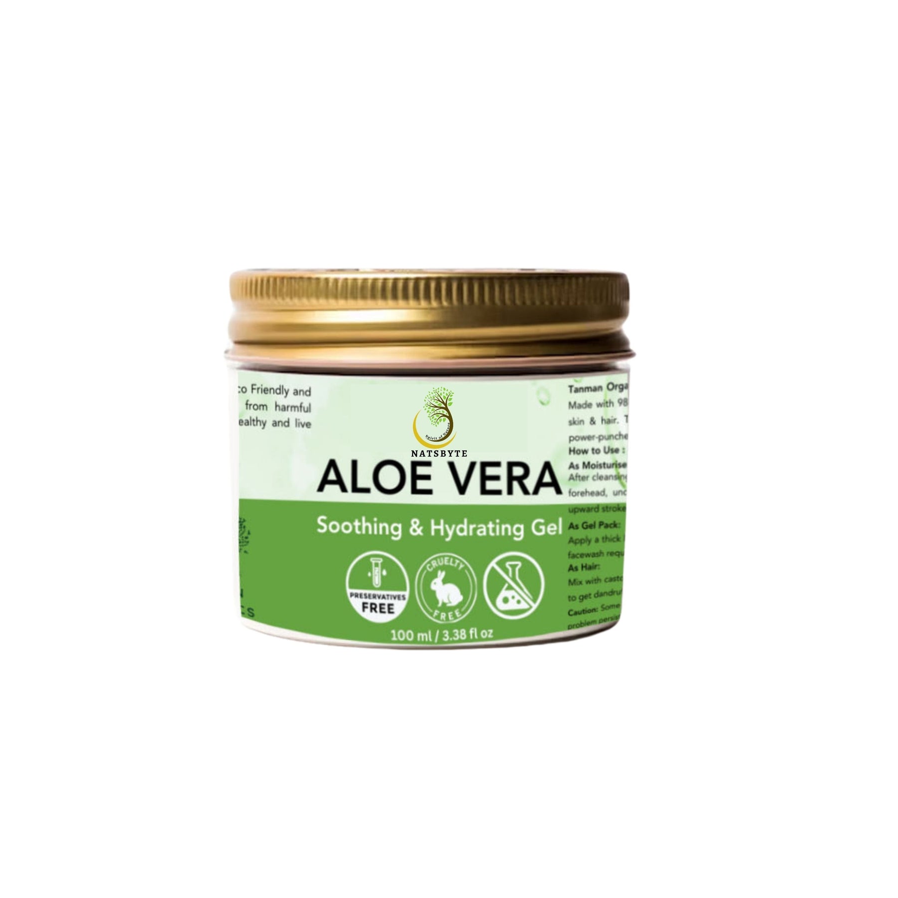 Natsbyte Brings Pure & Natural Soothing Aloe Gel A preparation of leaf pulp from the parenchymal tissue of the plant Aloe vera (Liliaceae). Aloe vera gel contains carbohydrate polymers, such as glucomannans or pectic acid, and various vitamins and essential amino acids, as well as other organic and inorganic compounds. Uses of Aloe Vera Gel 1. Hair Care: Aloe Vera gel can be used to help condition and moisturize the scalp and hair. It can help reduce scalp itching and dandruff, as well as increase hair growth. 2. Skin Care: Aloe Vera gel can be used to treat sunburns, insect bites, and minor cuts and scrapes. It has anti-inflammatory, antibacterial, and antifungal properties, which can help soothe and heal the skin. 3. Acne Treatment: Aloe Vera gel can be used as an acne treatment. Its antibacterial properties can help reduce inflammation, while its moisturizing properties can help keep the skin hydrated and balanced. Benefits of Aloe Vera gel 1. Moisturizes Skin: Aloe vera gel is a natural moisturizer that helps keep skin hydrated without making it greasy. It’s gentle enough to use on all skin types, including sensitive skin. 2. Reduces Acne: Aloe vera gel contains two hormones — auxin and gibberellins — that help reduce skin inflammation. These hormones provide anti-inflammatory effects that can help reduce the redness, swelling, and inflammation of acne. 3. Heals Wounds: Aloe vera gel contains compounds that speed up the healing process of wounds. It helps to reduce inflammation and irritation, as well as stimulate new cell growth. 4. Soothes Sunburn: Aloe vera gel contains several compounds that have anti-inflammatory and cooling properties, which can help soothe sunburned skin and provide relief from pain and itching. 5. Fights Aging: Aloe vera gel contains antioxidants that help fight free radical damage, which can lead to wrinkles and other signs of aging. It also contains compounds that help promote collagen production, which gives skin its elasticity and helps reduce the appearance of wrinkles.