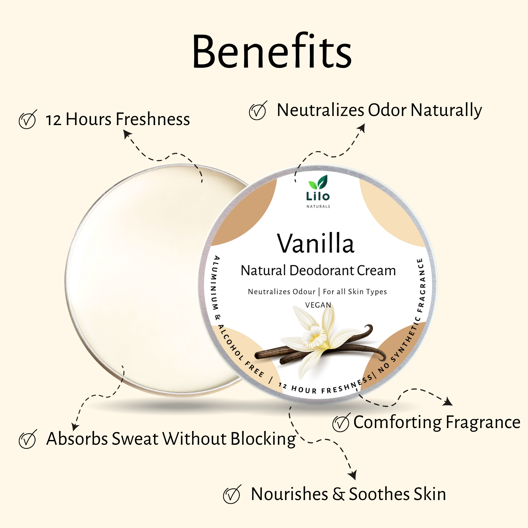 Lilo Naturals Natural Deodorant Cream | Vanilla | Enriched with Shea Butter, Mango Butter, Jojoba & Almond Oil