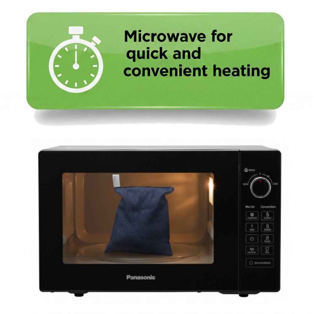 Simply microwave for a few minutes and place on sore muscles, stiff joints, or areas needing relaxation. The sturdy denim exterior adds a unique touch—built to withstand repeated heating while remaining soft and comfortable against the skin.