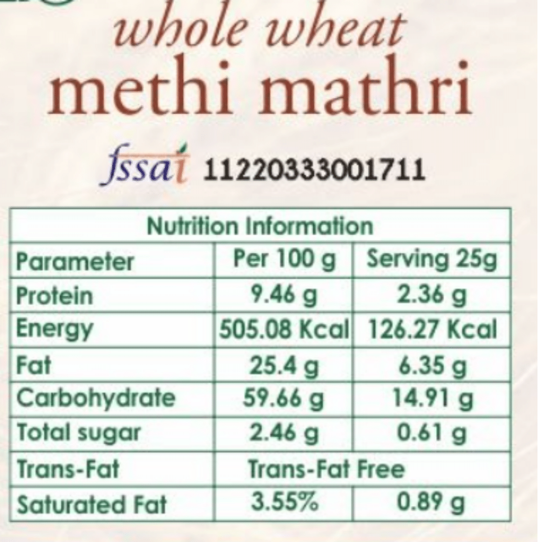 Neenus Natural Whole Wheat Methi Mathri - 250 GM; Mathris – little crunchy savouries that make you remember your naani and daadi’s kitchen.