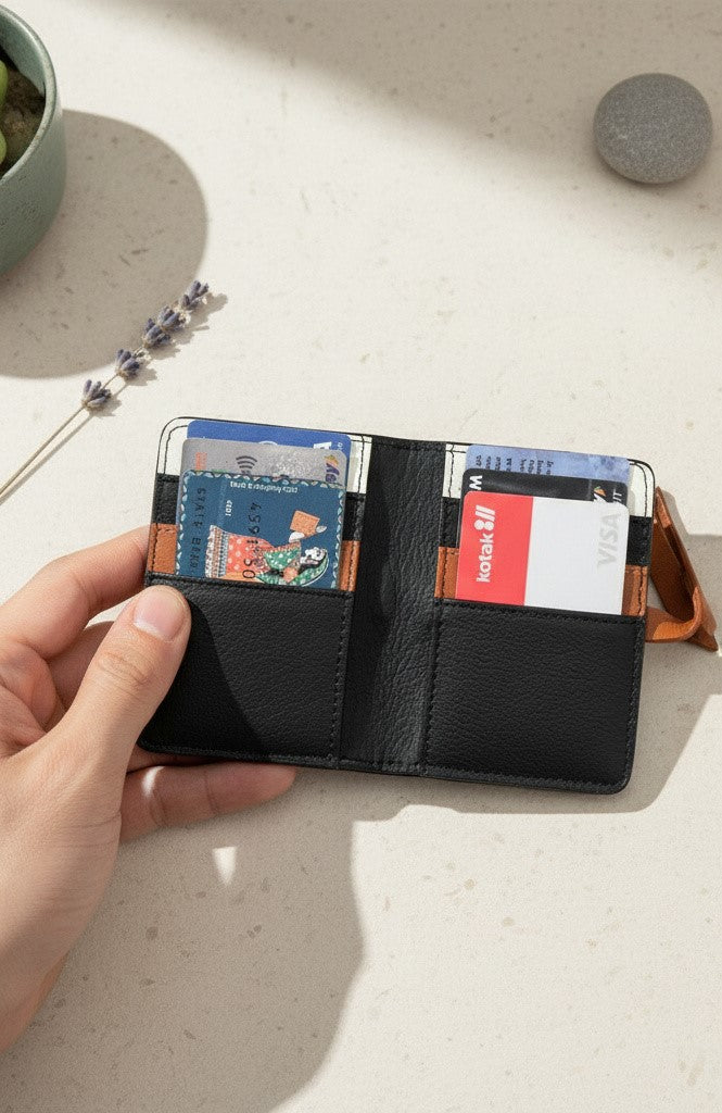 Elevate your money game with the minimalistic Bi-Fold Neith Cardholder. With a loop around closing mechanism and a sleek vertical look, this cardholder is sure to be one of your most finest purchases.