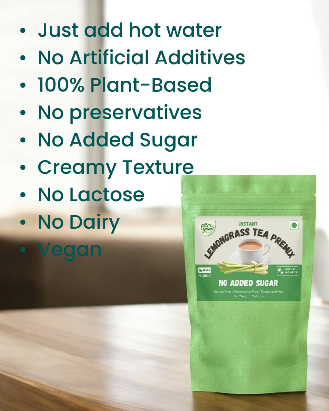 Enjoy the pure essence of tea without any added sugar! Our No Added Sugar Lemongrass Tea Premix is a 100% plant-based blend crafted for guilt-free indulgence. Made with Rice Creamer, Coconut Milk Powder, Tea Extract, and Natural Lemongrass Flavor, this instant tea delivers a refreshing, aromatic taste in every sip. Perfect for those seeking a lactose-free, vegan, and diabetic-friendly tea alternative. Simply add hot water, stir, and enjoy!