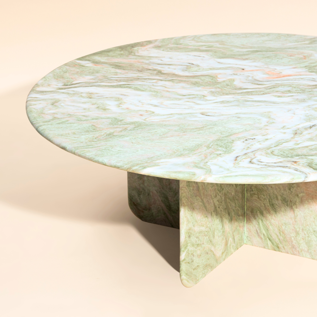 • Our newly designed marble table features gentle curves on both the tabletop and legs, creating a warm and inviting aesthetic. It's a stunning accent piece for any space.