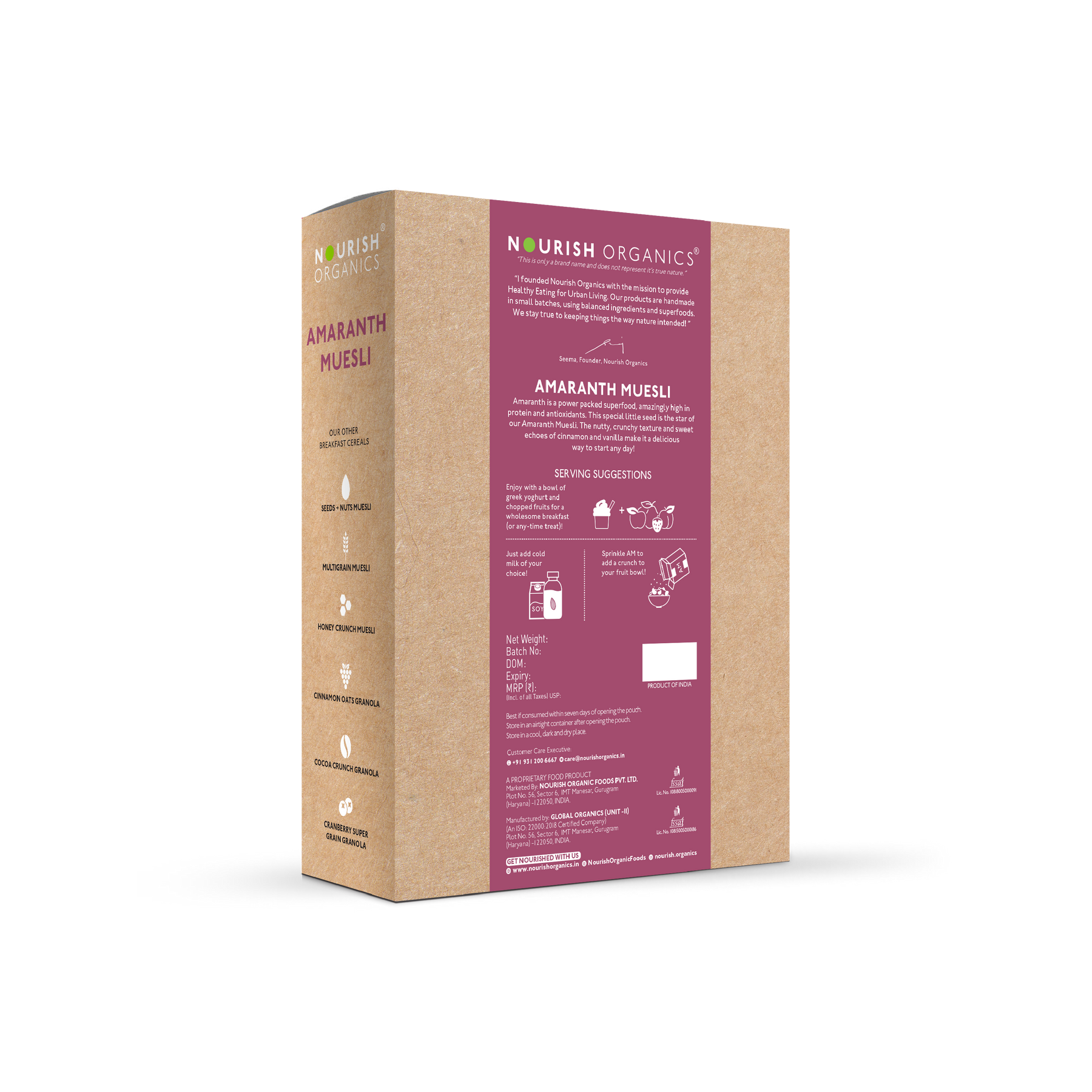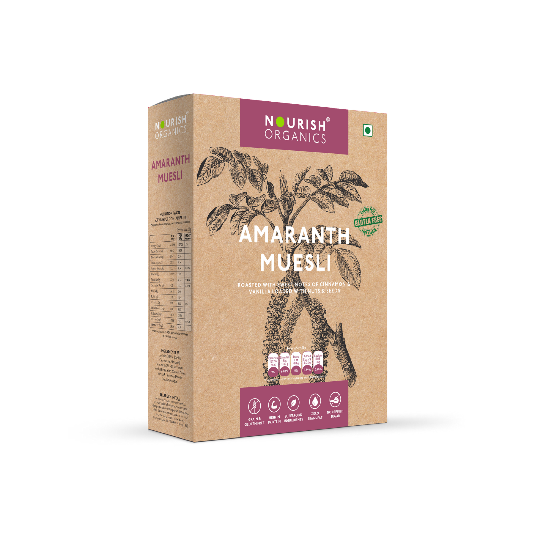 Amaranth is a power-packed superfood, amazingly high in protein and antioxidants which makes it a best breakfast option. This special little seed is the star of our Amaranth Muesli! The nutty, crunchy texture and sweet echoes of cinnamon and vanilla make it a delicious way to start any day. Enjoy a bowl with greek yogurt and fruit compote for a brilliant breakfast (or any-time treat)!