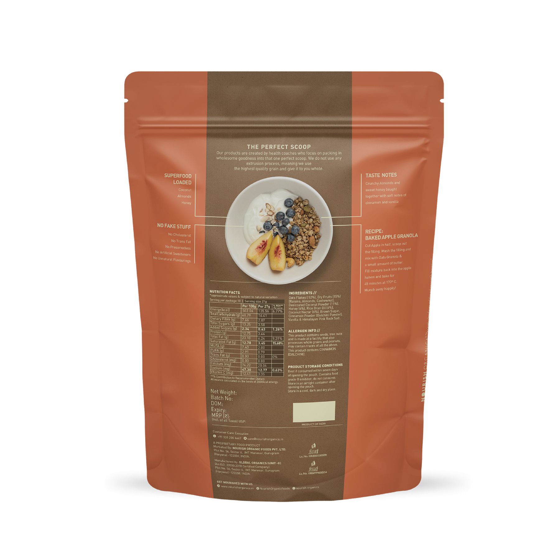 Say ‘hello!’ to your day with healthy breakfast cereal - Our super hearty, super satisfying Oats Granola. Nourish Organics Oats Granola is an ideal breakfast choice for health conscious people. This healthful blend is chock-full of whole food goodness. Organic brown sugar and honey add a touch of sweetness, while cinnamon and vanilla add a warm and comforting flavor. It’s delicious served in a bowl with milk, atop a cup of smooth & creamy yogurt, or as a simple snack all on its own!