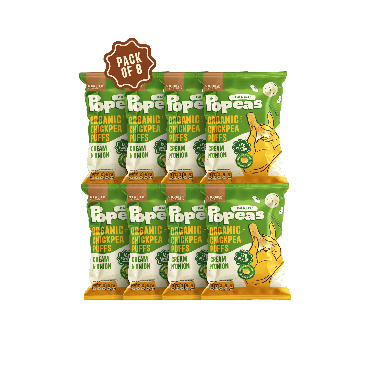 NOURISH ORGANICS Cream & Onion Popeas - Pack of 8 (60g)