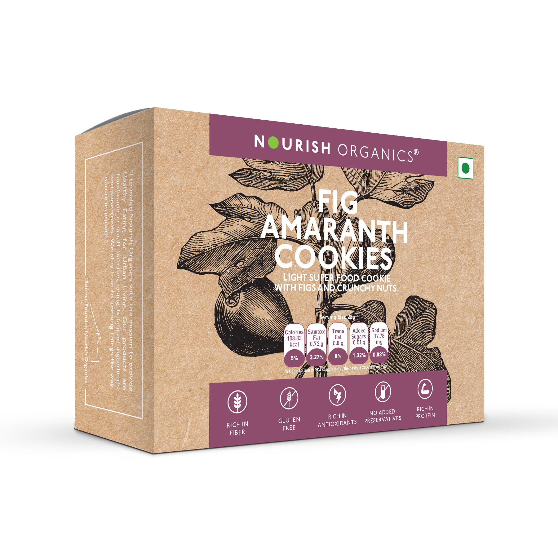 Nourish Organics Fig Amaranth Cookies are a real rich delight. Combination of Fig and Amaranth makes it a a super-food punch. Right mix of health with goodness. These lightly sweetened cookies pack a super-food punch, with powerful ancient grain amaranth adding a satisfying crunchy texture. Try them with a bit of your favorite jam for a fast and easy treat!