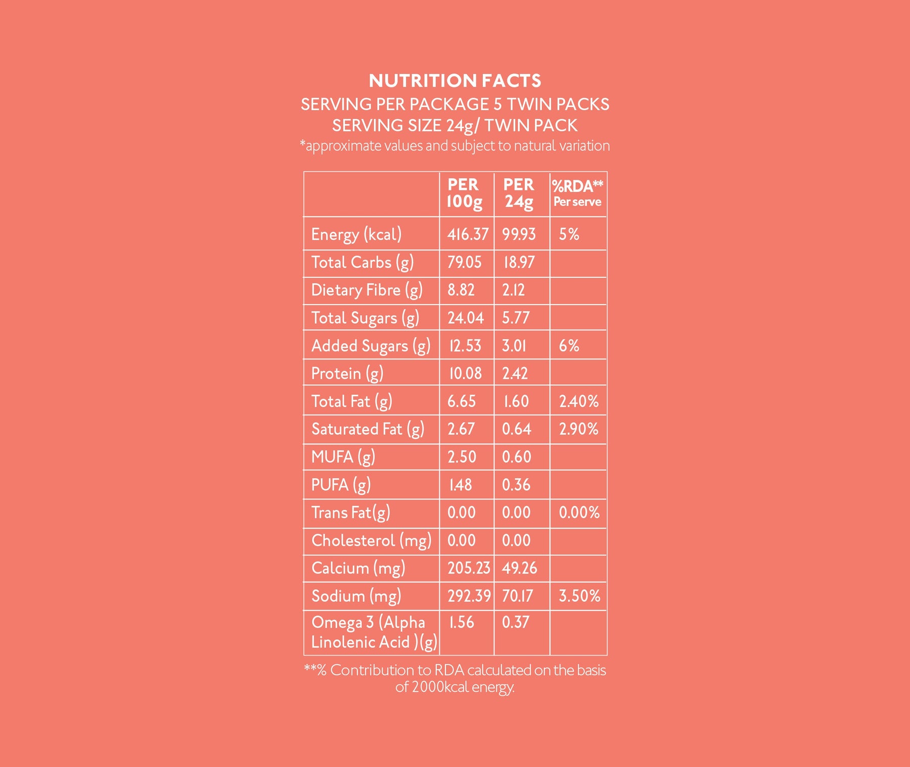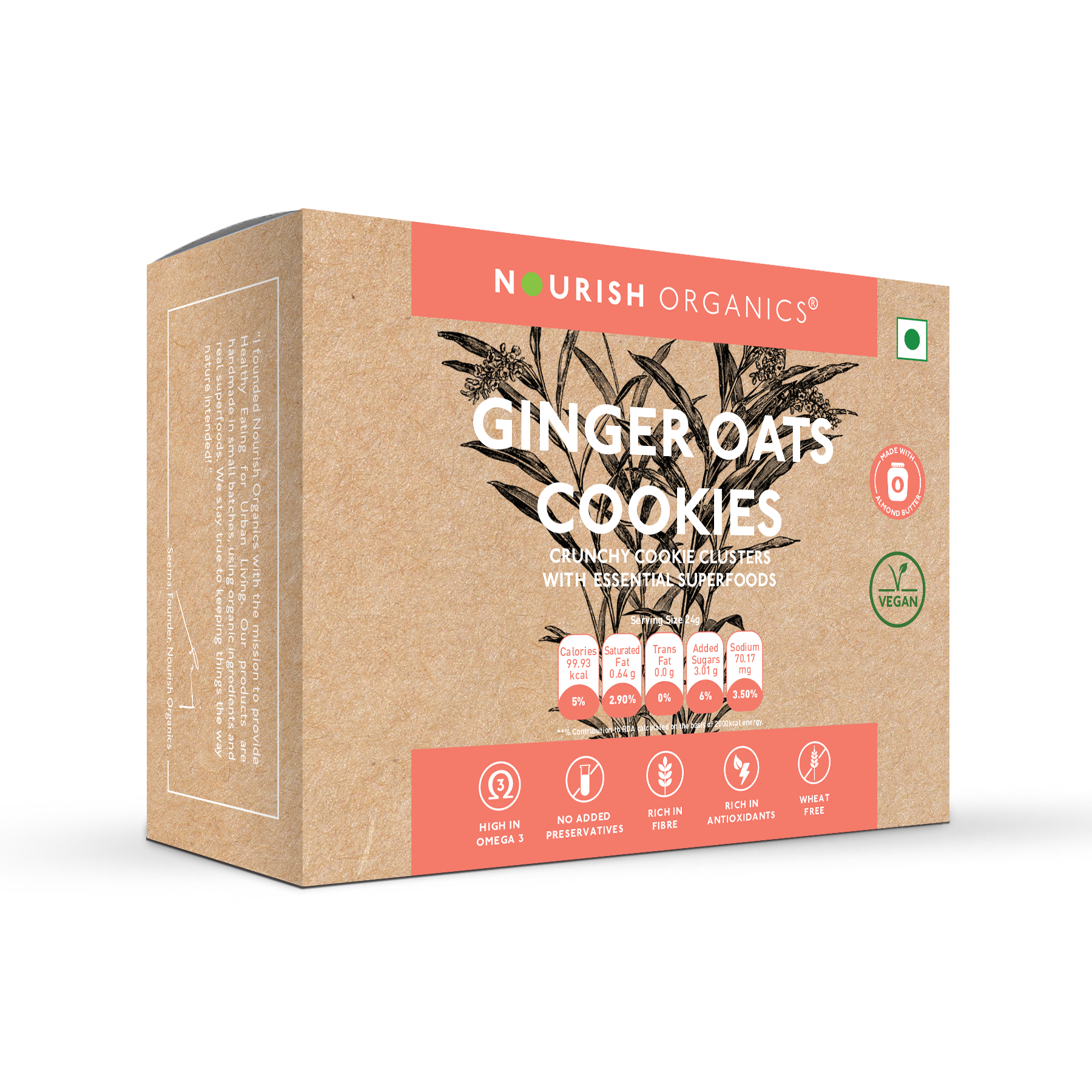 Zesty ginger, fibrous oats, omega rich seeds and warm vanilla come together to create a scrumptious cookie like no other. Packed with plant fibre, protein & antioxidants, our Ginger Oats Cookies are hearty cookies you can enjoy anytime