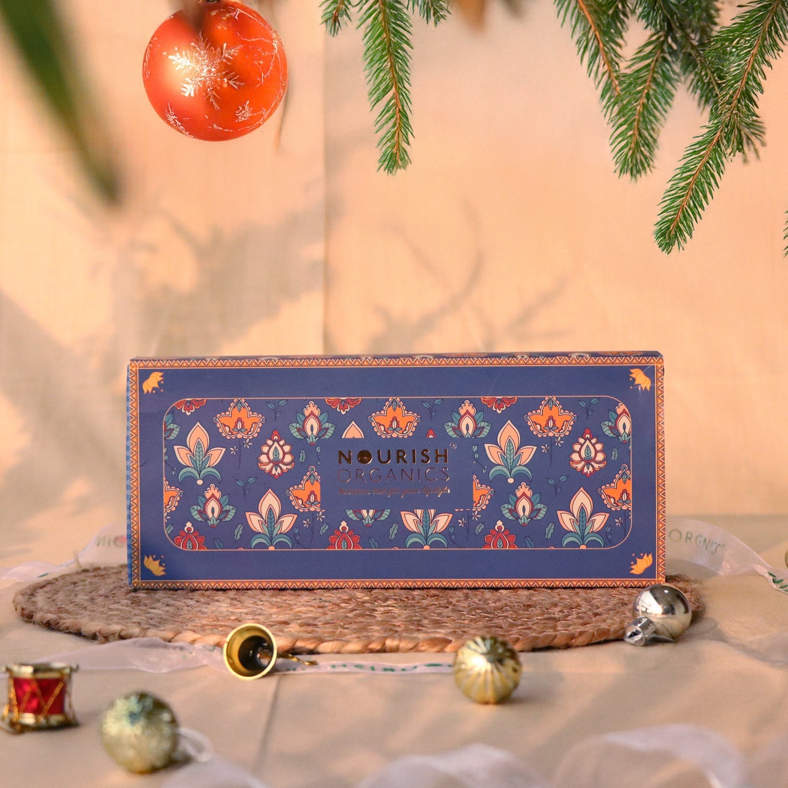 Add a touch of elegance to your Christmas and New Year gifting with our Blue Edition Match Box Cookies. Featuring 2 pieces each of our best-selling cookie flavours, this hamper offers a delicious balance of taste and mindful indulgence. Individually wrapped in vibrant labels, they’re perfect with chai, coffee, or enjoyed on their own. A chic festive gift that blends flavour, goodness, and style in every bite.