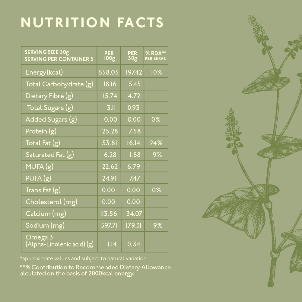 Our Omega Seed Mix comes in a nutritious combo of 2! Our Omega Seed Mix is a savoury delight! This crunchy, wholesome blend has sunflower seeds, pumpkin seeds peanuts and buckwheat, with the goodness of fibre, anti-oxidants, Vitamins, minerals and other health, heart,mind boasting properties, this mix goes along with just about anything. Our delicious mix gets it’s flavour from a hint of soy sauce which makes this snack a true Super-food star. this fulfilling delight is a perfect treat by the handful or as a topping for hummus, soup, salads, and beyond!