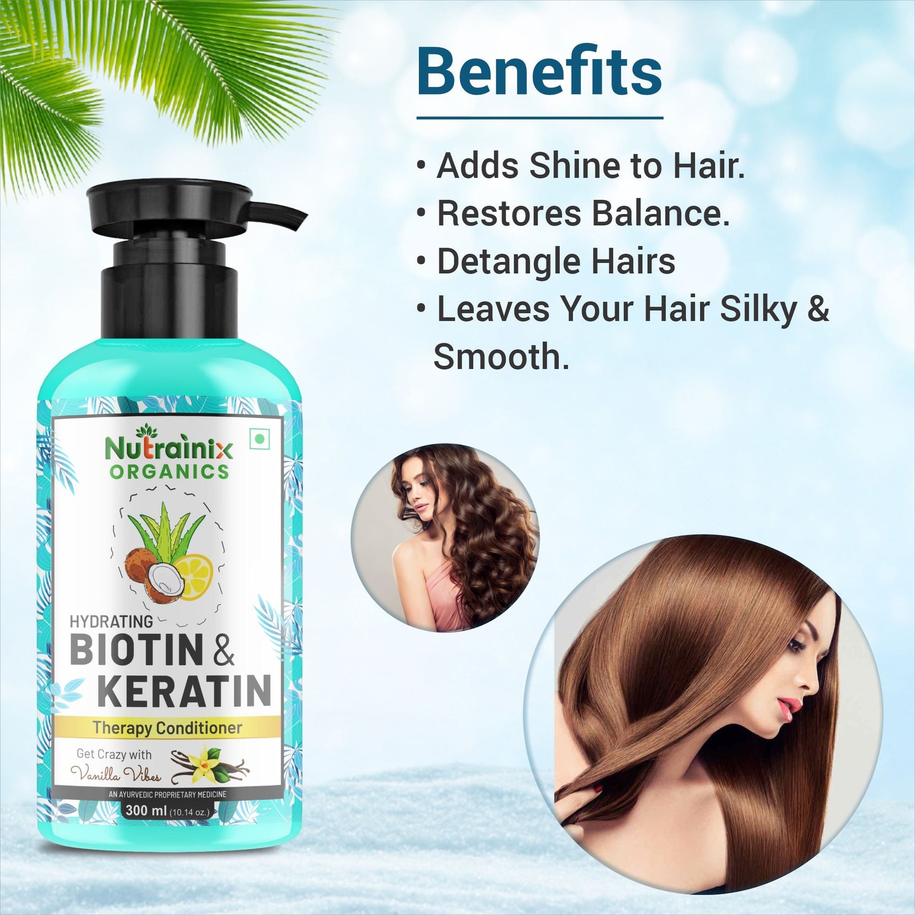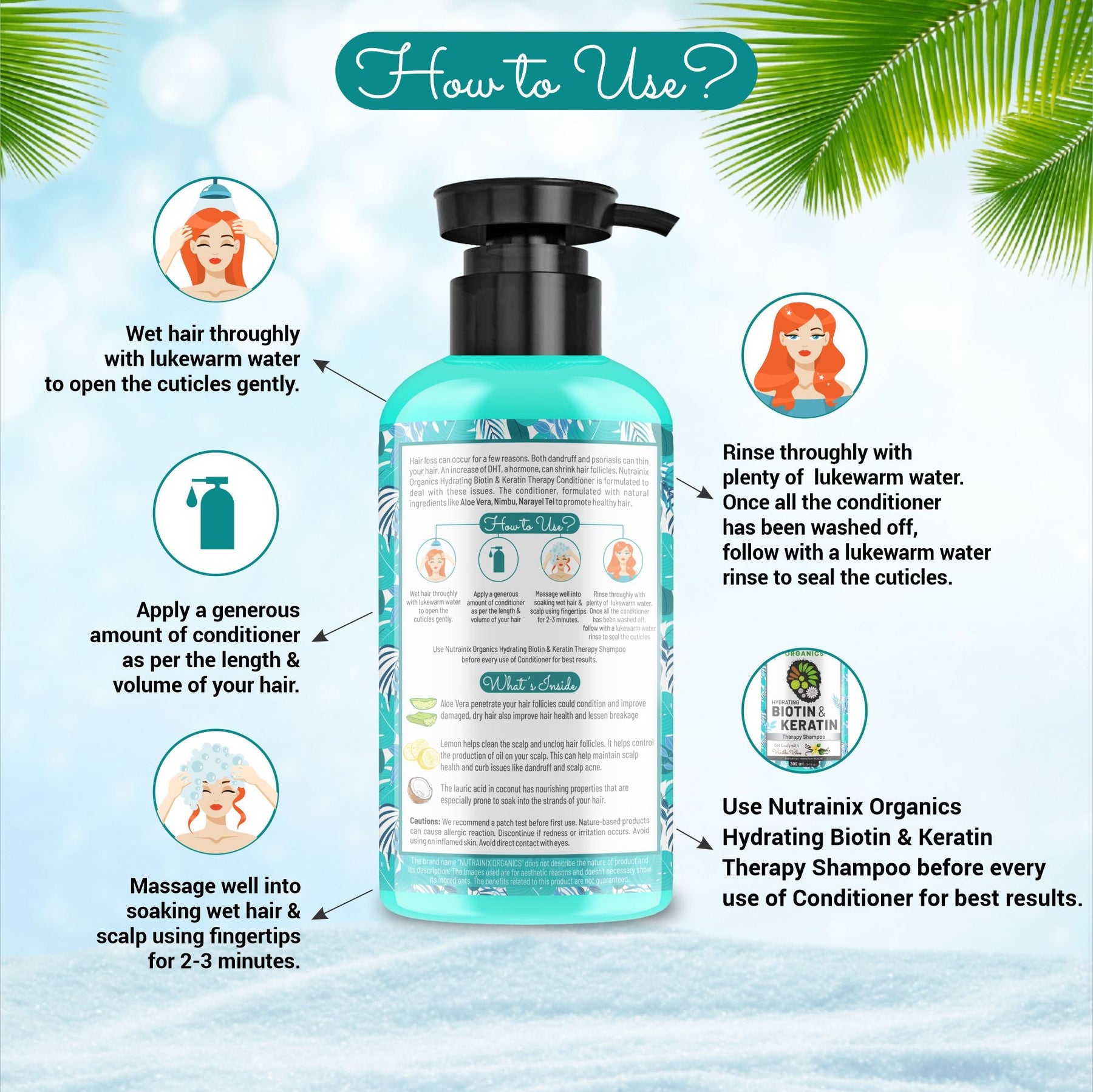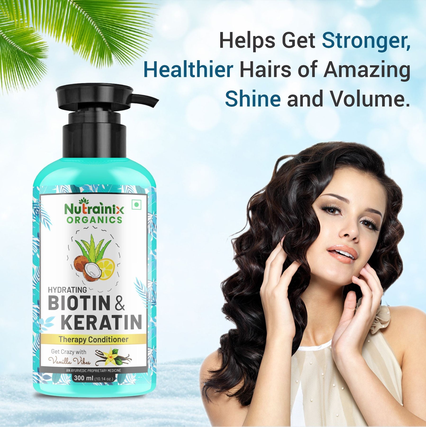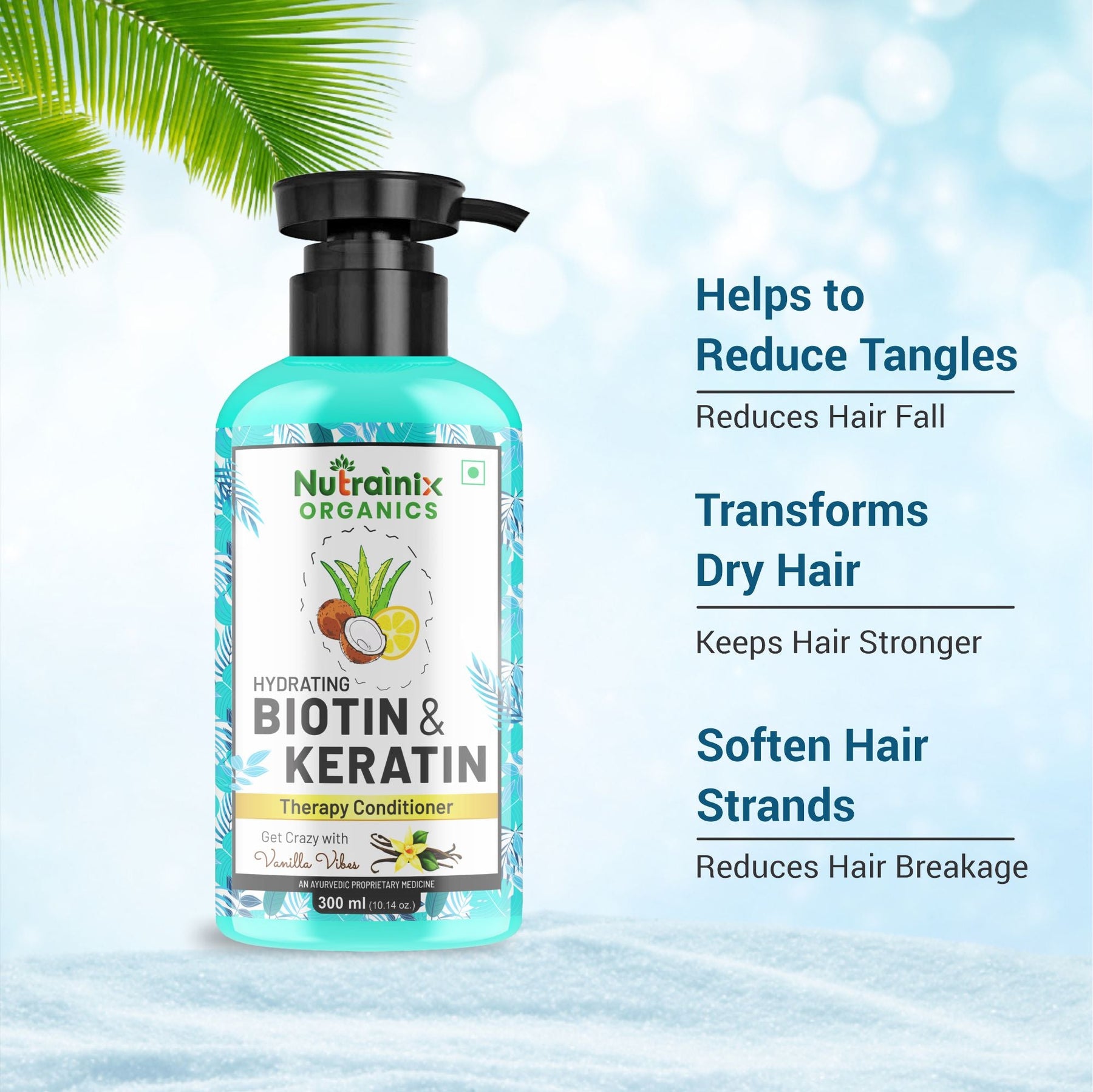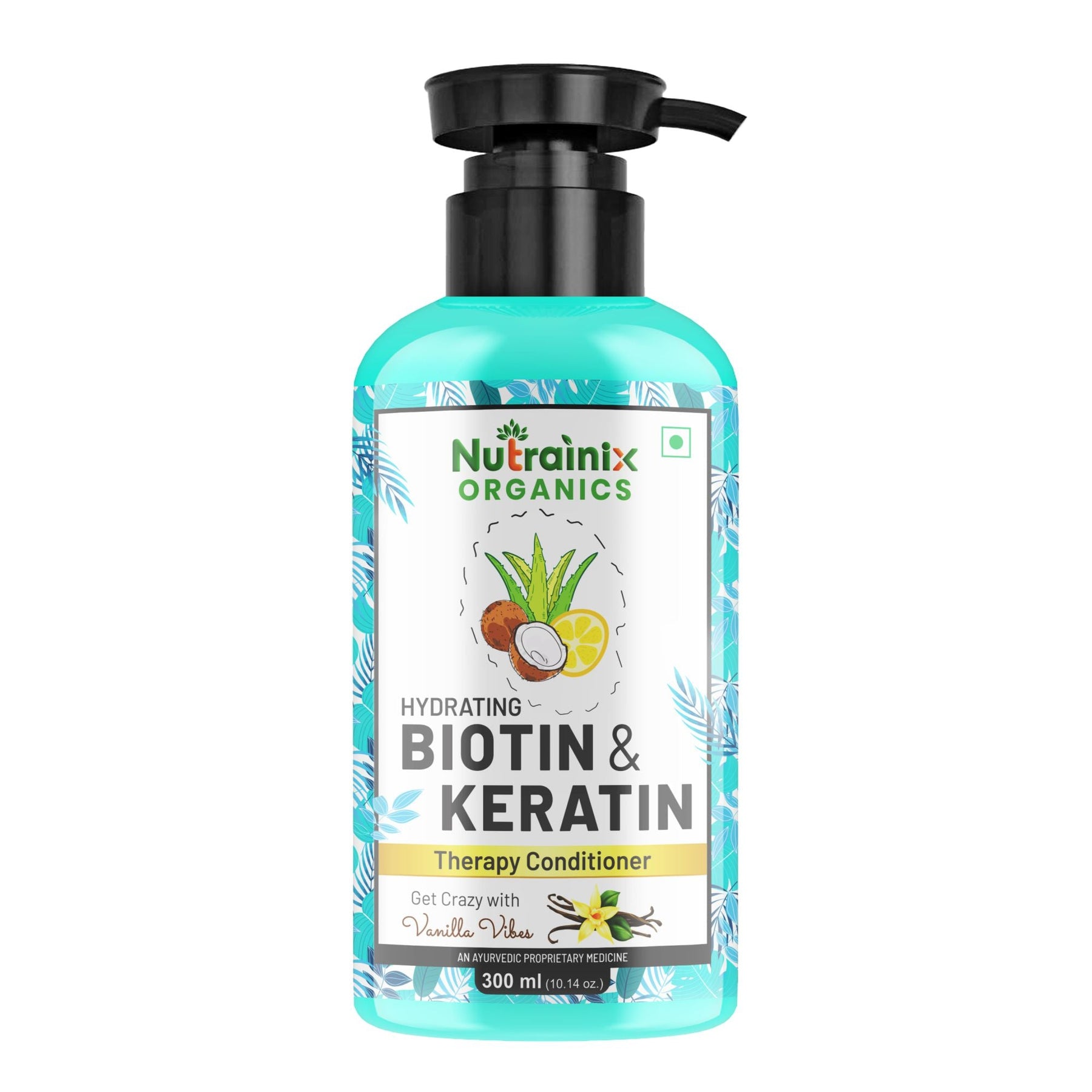Nutrainix Organics Hydrating Biotin & Keratin Rescue Conditioner Miracle Worker for Damaged, Frizzy & Color-Treated Hair - 300 ml