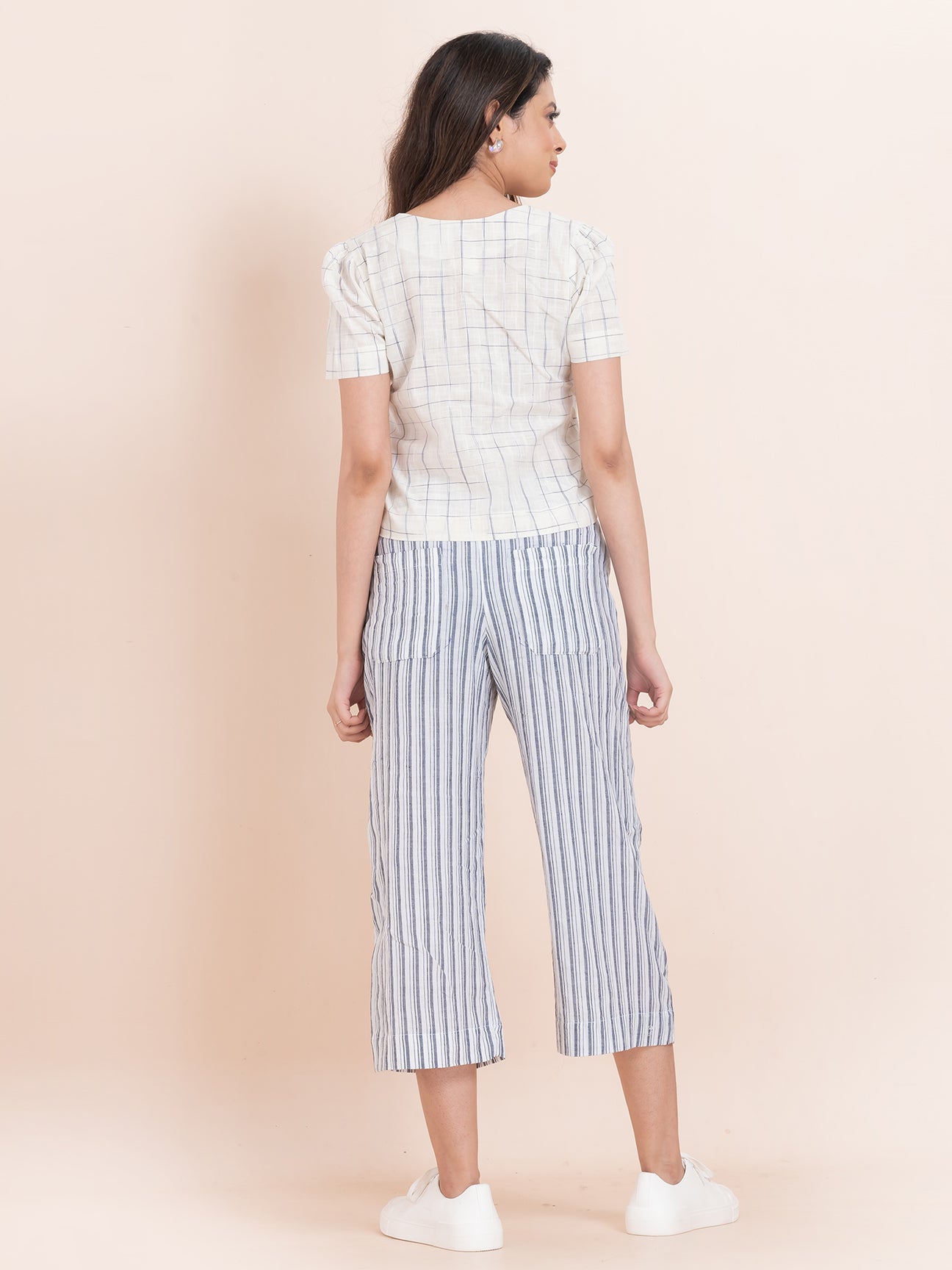 OCAU Basic Striped Wide Leg Cropped Pant - White and Blue Striped