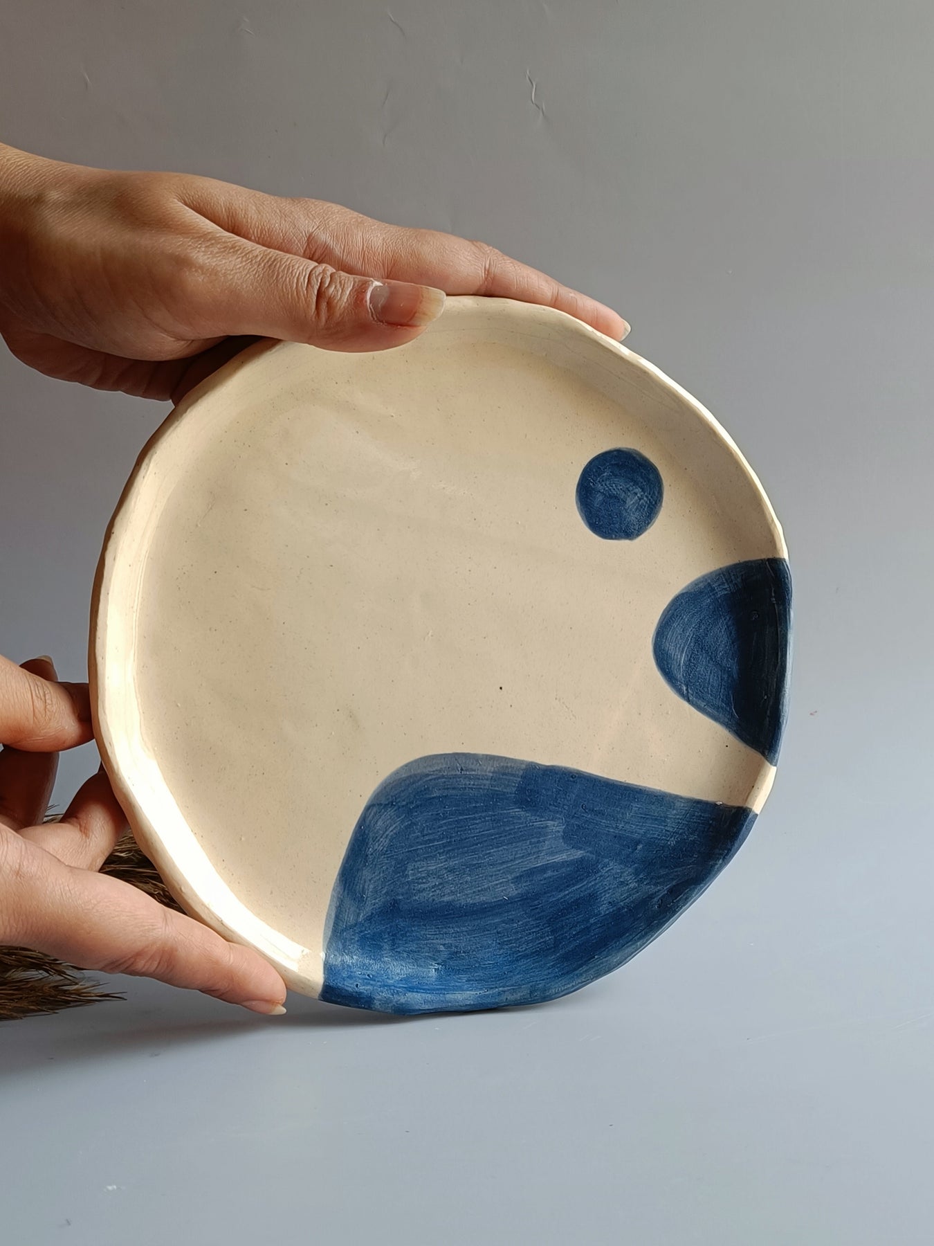Inspired by the rhythmic movement of waves, the Ocean Flow Plate brings a touch of serenity to your table. Handbuilt with organic edges and finished with fluid blue brushstrokes, this ceramic quarter plate embodies the harmony of nature and craftsmanship. Perfect for serving snacks, desserts, or appetizers, it adds an artistic and earthy charm to every meal.