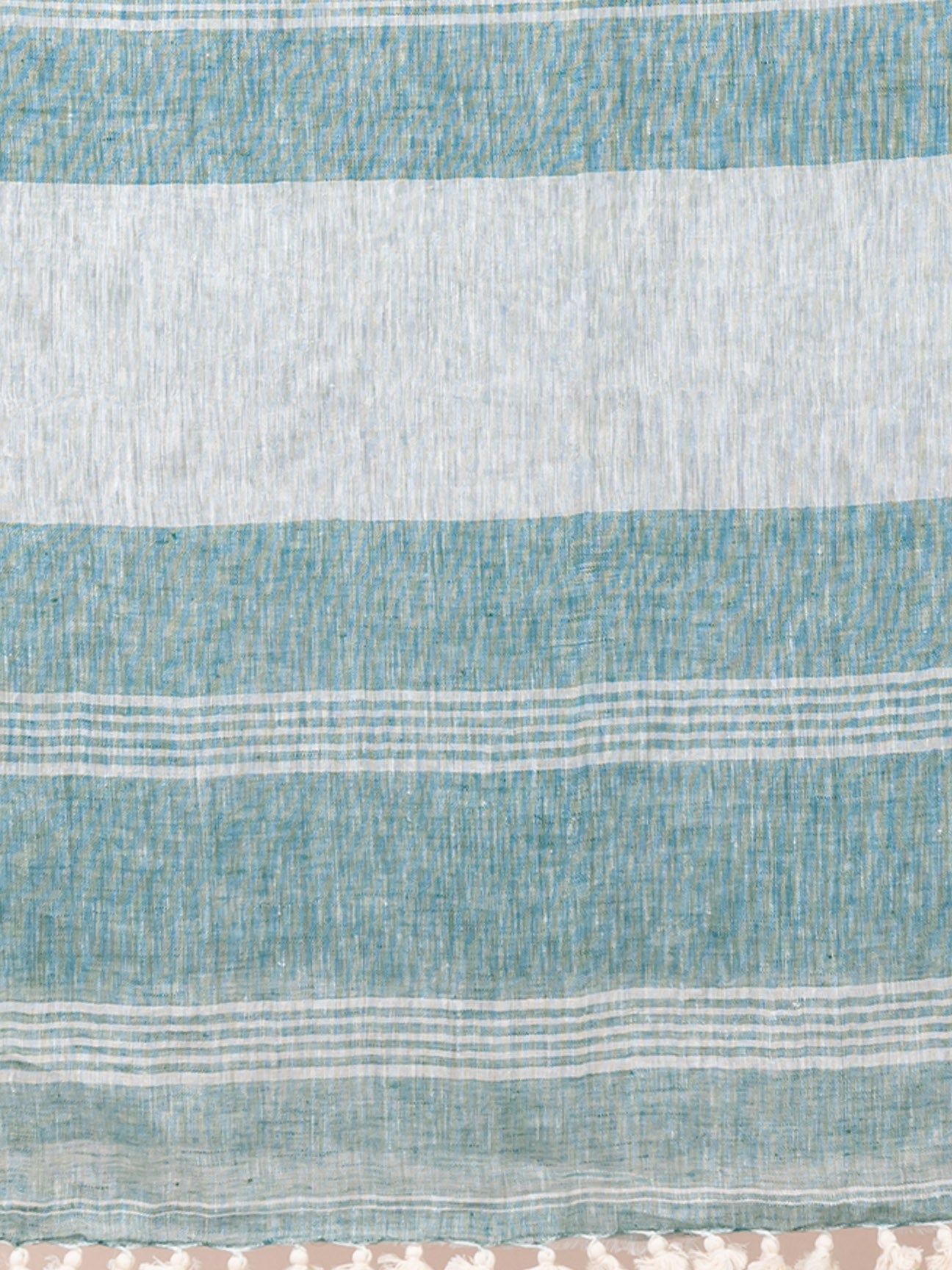 OCAU Ocean Mist - Pure Linen Solid Saree With Zari Border Without Blouse Piece l Teal