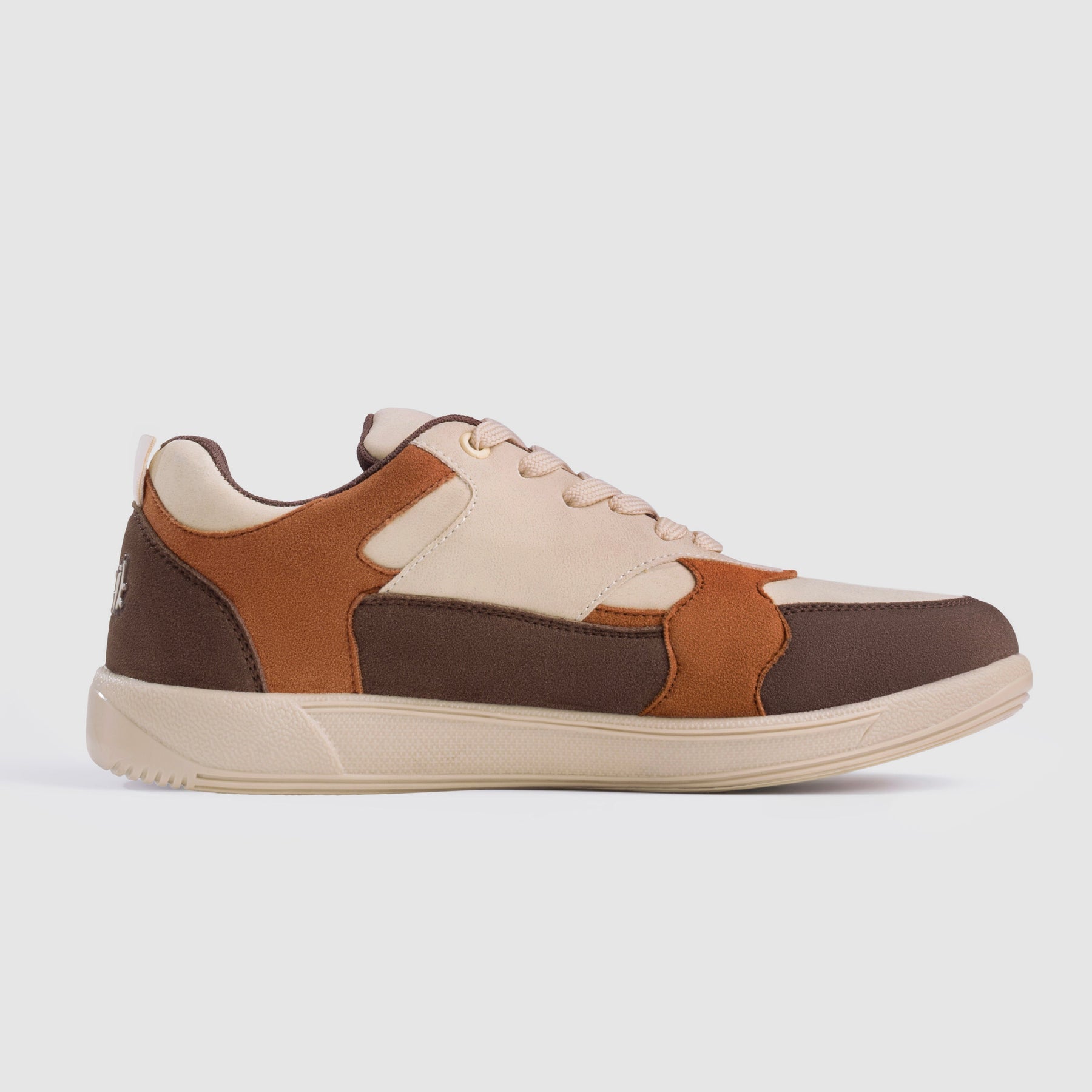 Shop offcode COCO Sneakers — beige, chocolate, and caramel-toned sneakers crafted from vegan suede & leather. Cushioned PU insole and lightweight beige TPR sole for all-day comfort.