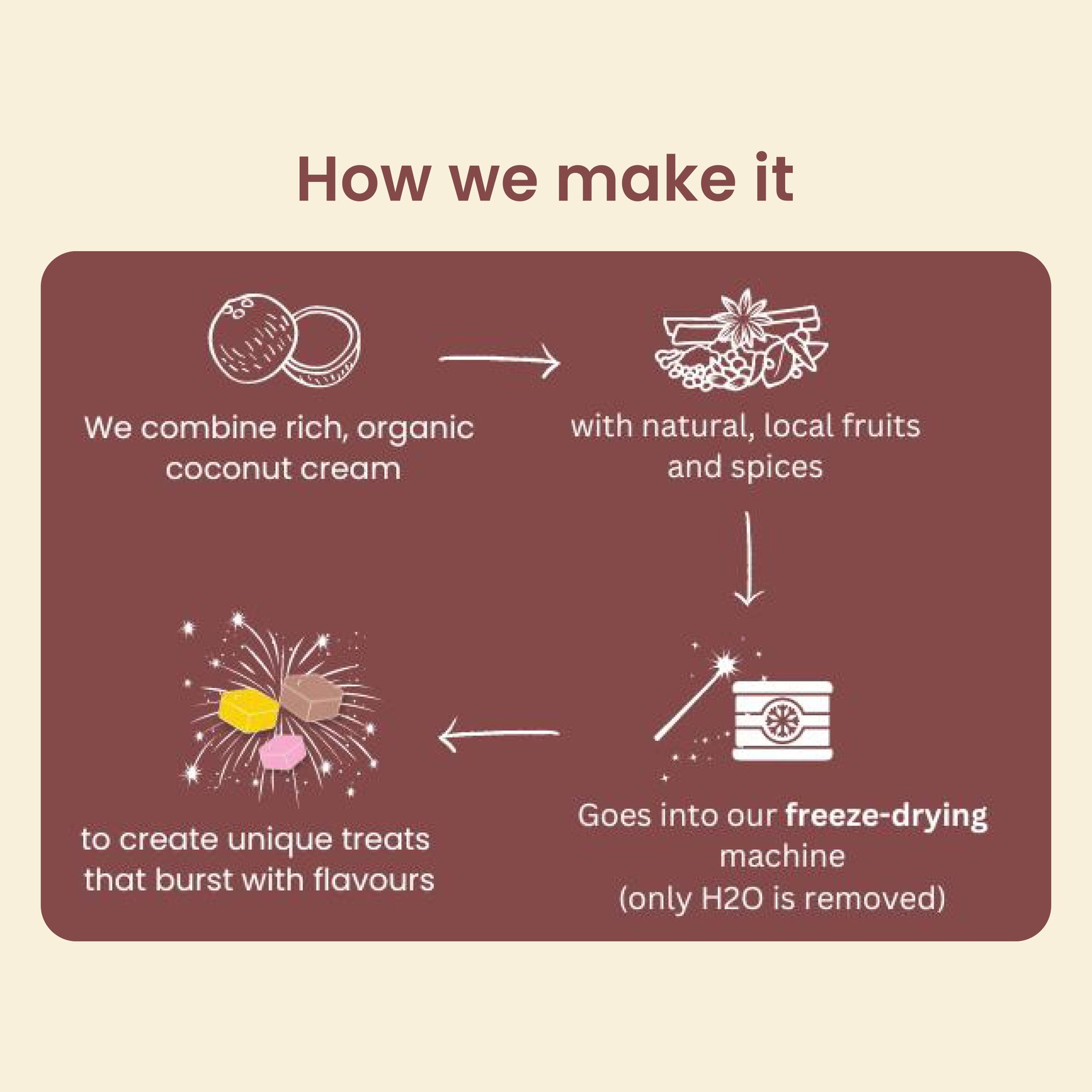 ·      Freeze-Dried & Nutrient-Rich: Our freeze-drying process preserves up to 97% of nutrients, ensuring a healthy, shelf-stable snack that delivers rich, authentic flavour.