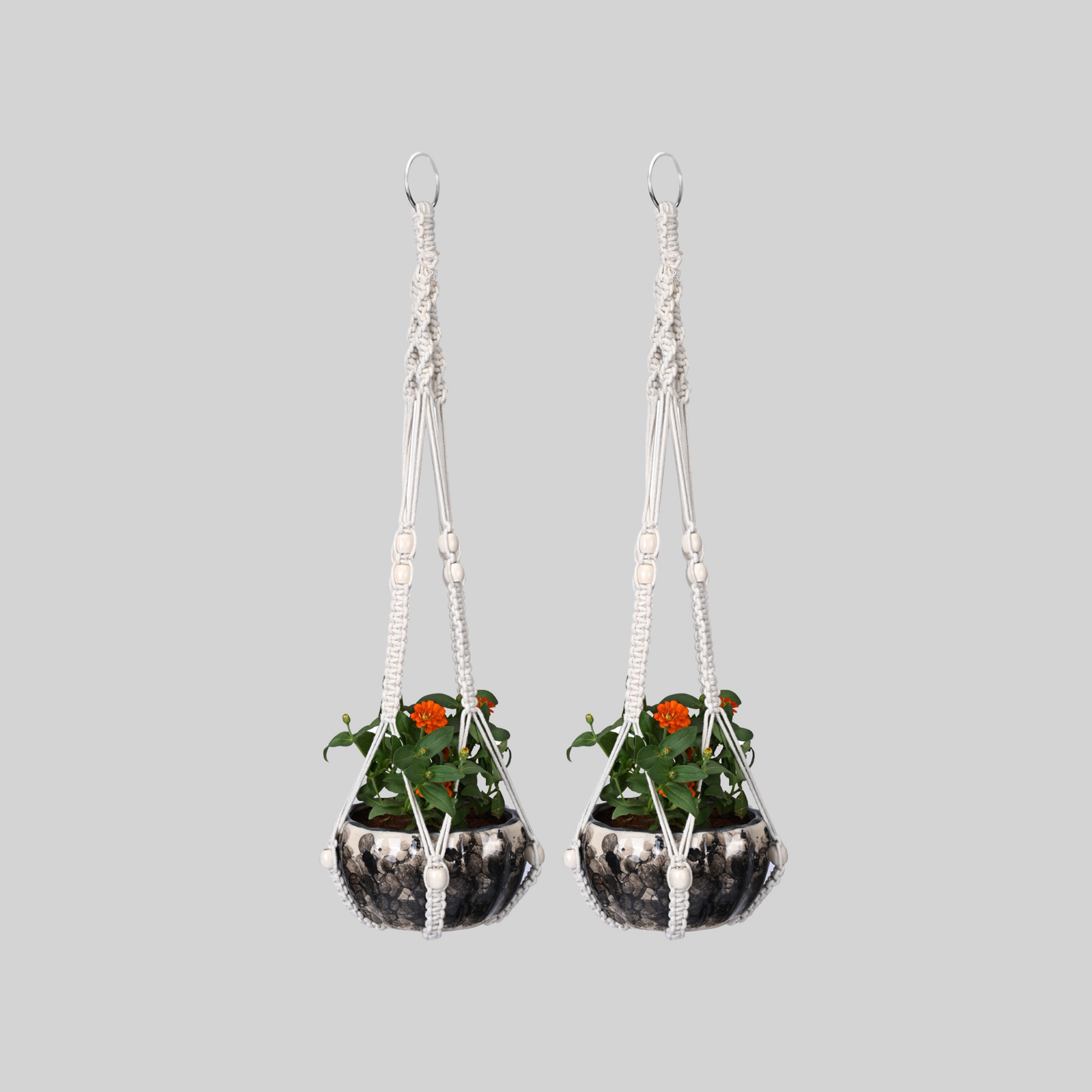 OIKO Macrame Cotton Plant Hanger with Wooden Beads | Stylish Indoor Decor