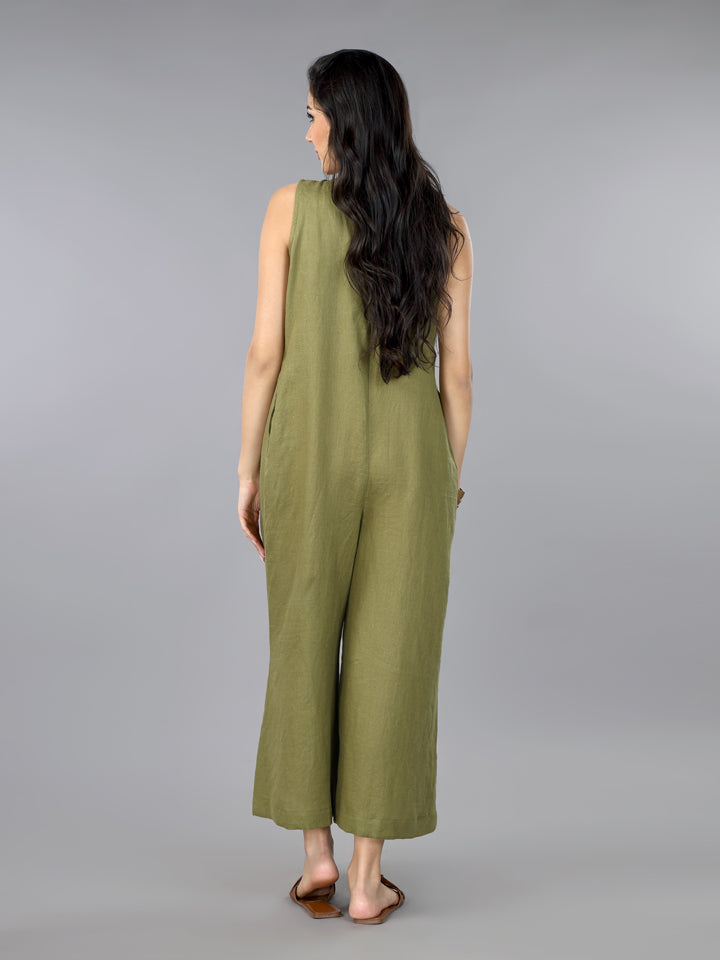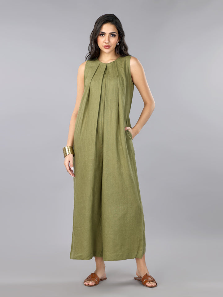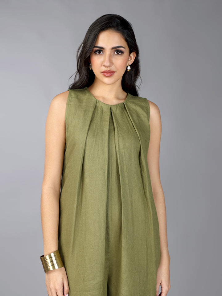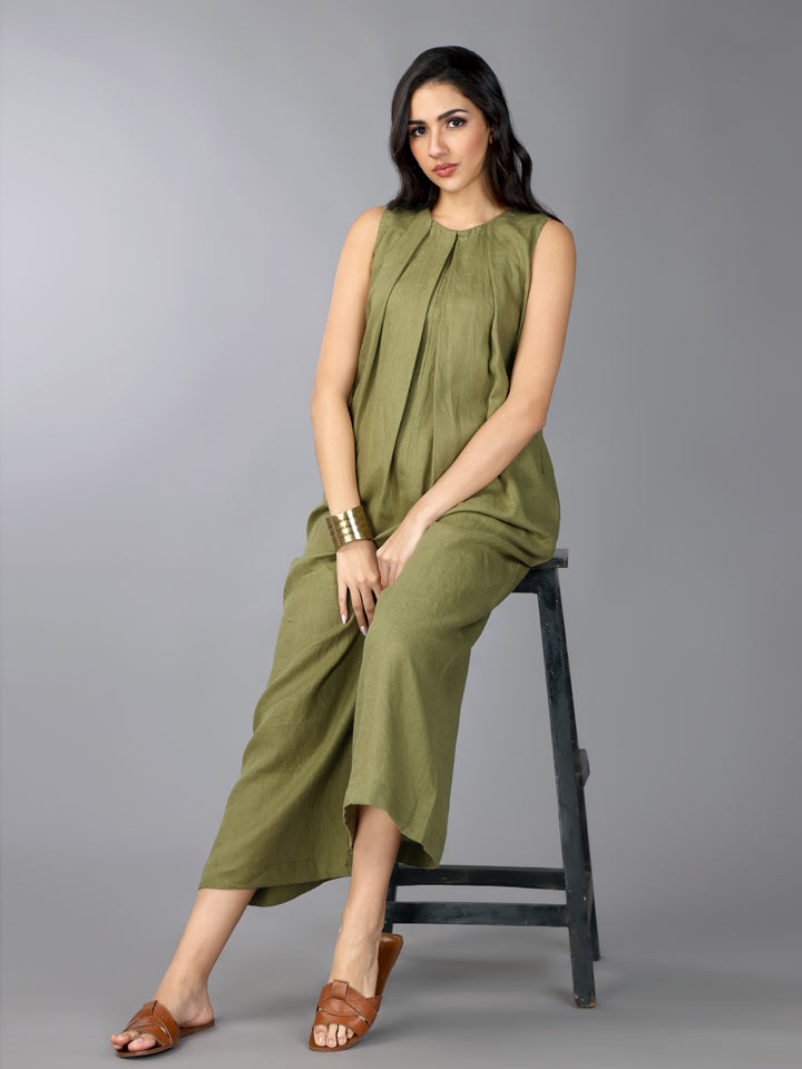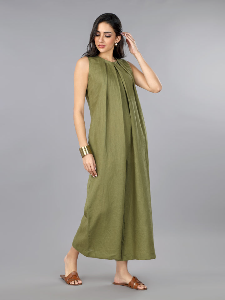 Gothilo Olive Linen Pleated Jumpsuit