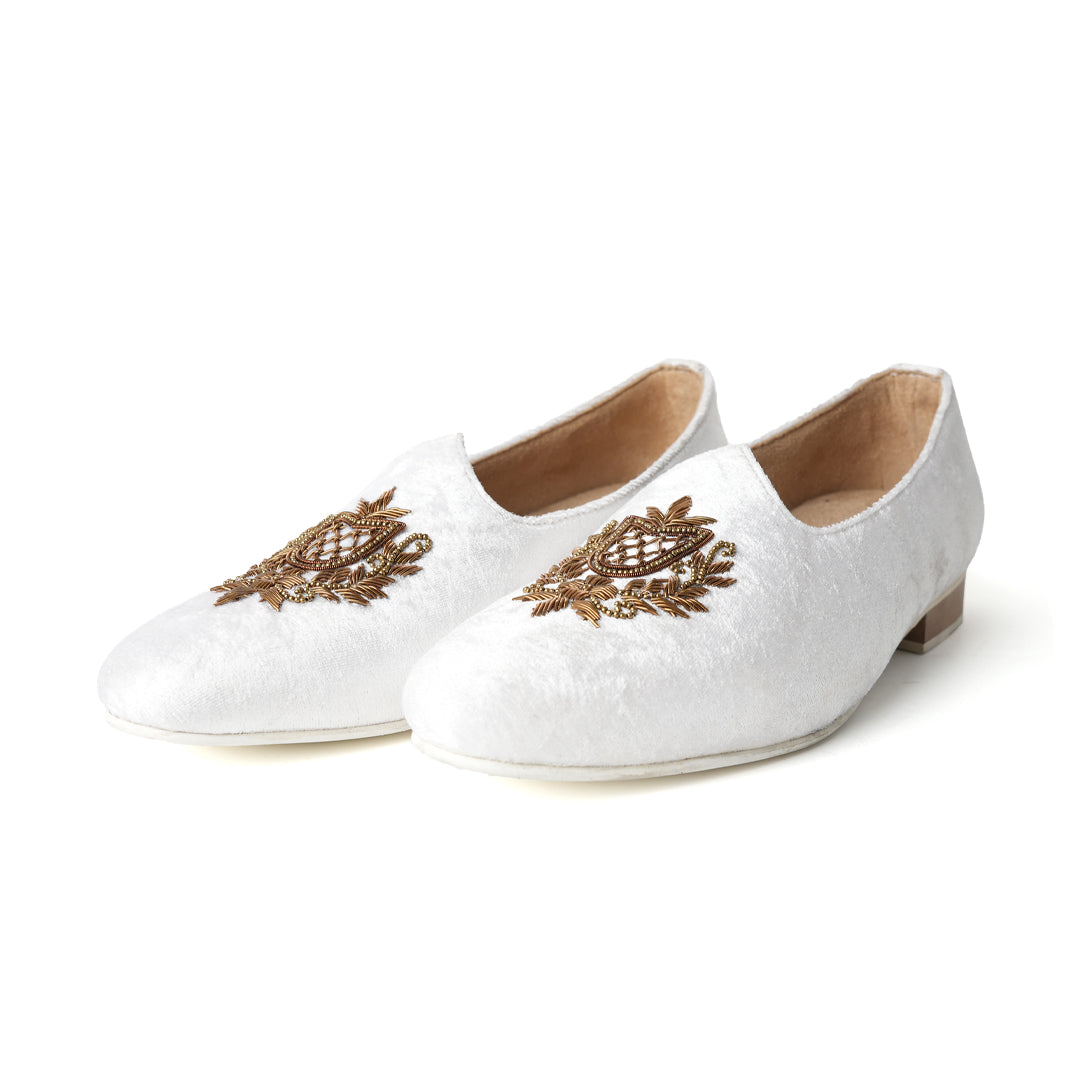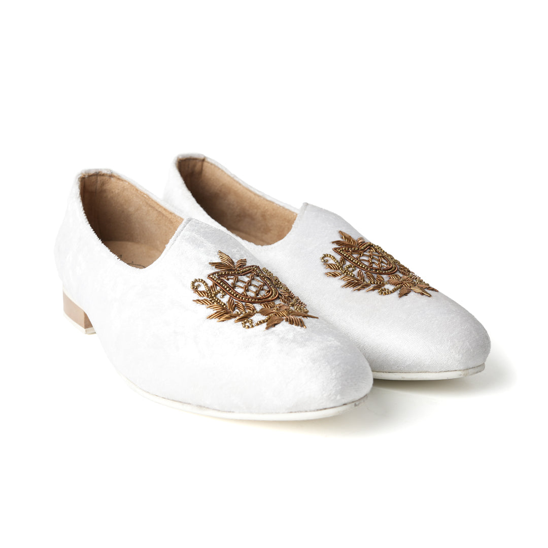 Monkstory Opulenza Embroidered Mojri - Moon White