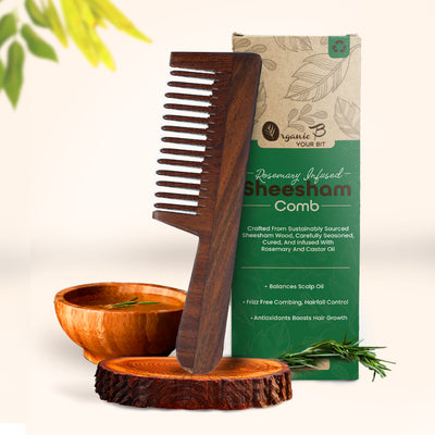 Organic B Indian Rosewood Straight Handle Wide Tooth Comb |Rosemary Infused