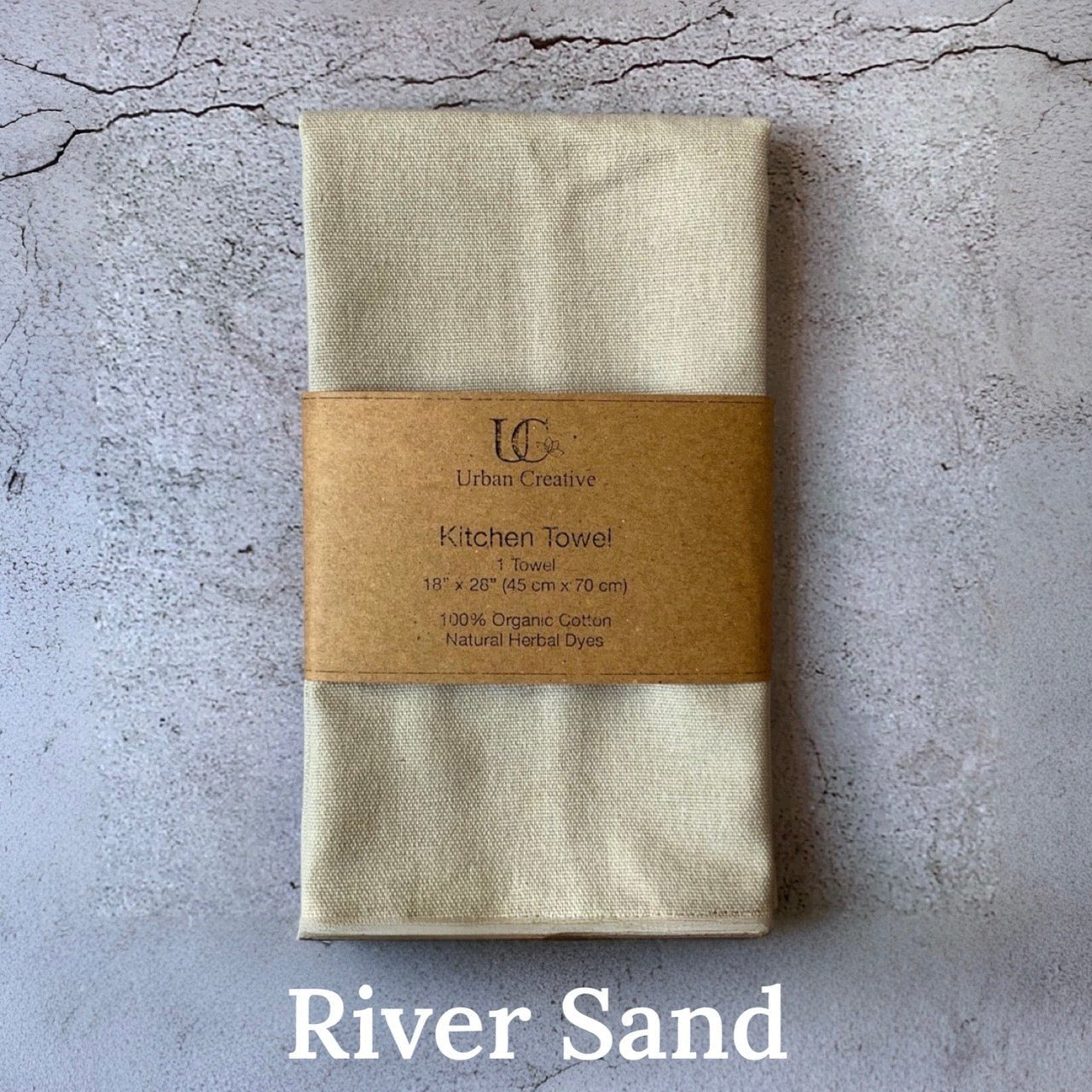 Versatile and absorbent organic cotton kitchen/tea towels made from GOTS certified organic cotton canvas fabric, in beautiful solid pastel colours dyed with natural herbal dyes.