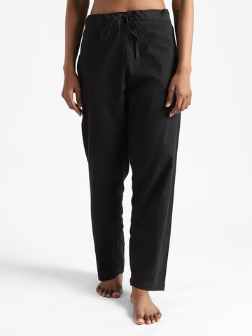 LivBio Women's Pants | Iron Black | 100% Organic Cotton | Naturally Dyed | Hand Spun and Hand Woven Trousers | Relaxed Fit