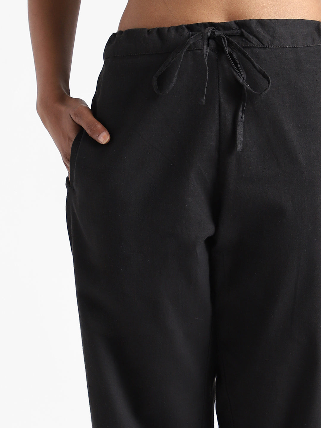 This woman’s Comfort Fit Cotton Pants are made of Hand Spun & Hand Woven Organic Cotton and Naturally Dyed from Plants & Ayurvedic Herbs. It has an elastic rubber waistband with drawstring closure, slant pockets, mid-rise & a relaxed fit. You could pair it up with a Kurti, top, or a tee. It could also be used as your Yoga wear or night wear since they are super comfortable and healthy.
