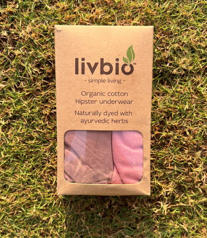 LivBio Organic Cotton Hipster Underwear | Women's Underwear Combo | Rose Pink and Soil Brown | Naturally Dyed | Pack of 2