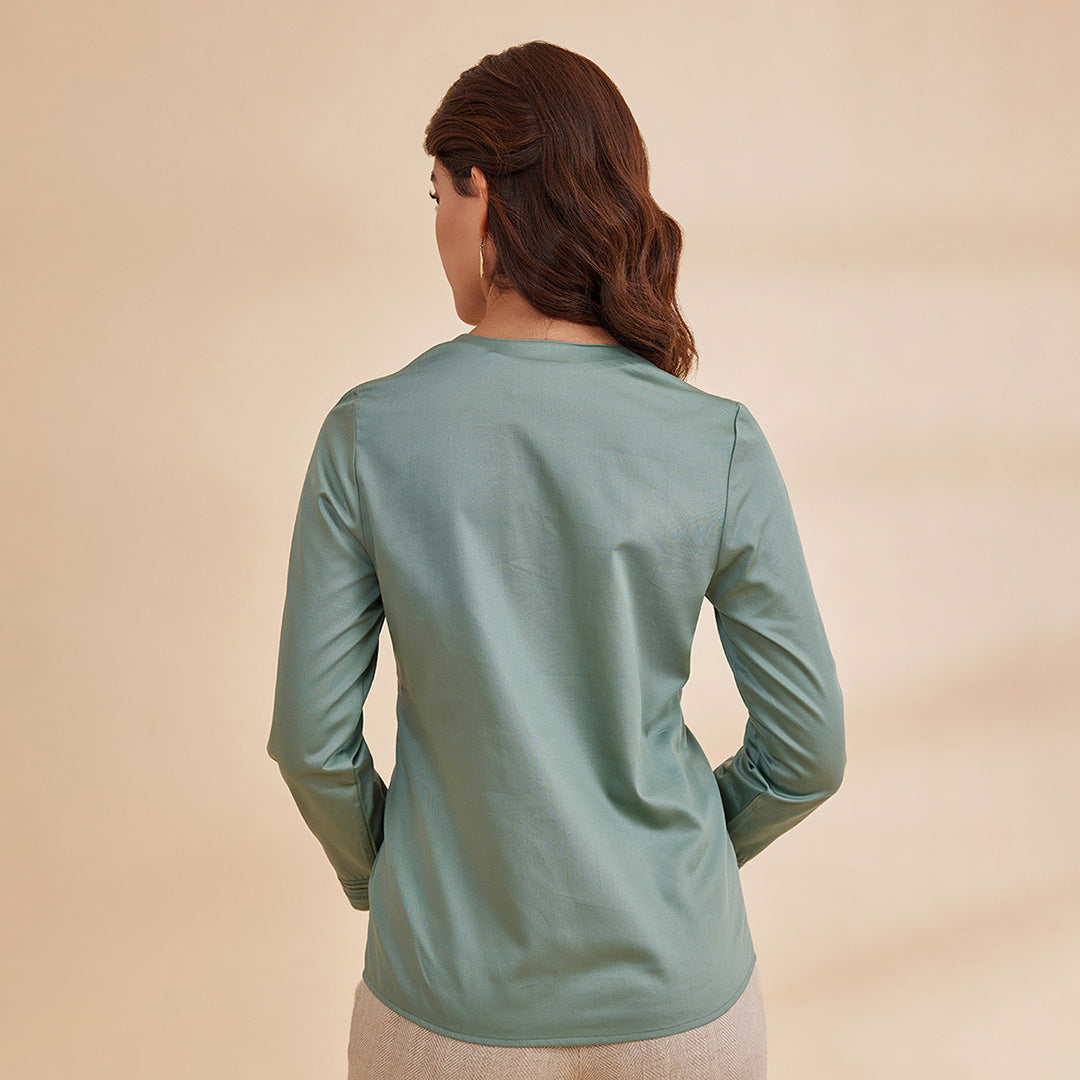 B77 Women's Organic Cotton Satin Wrap Neckline Top