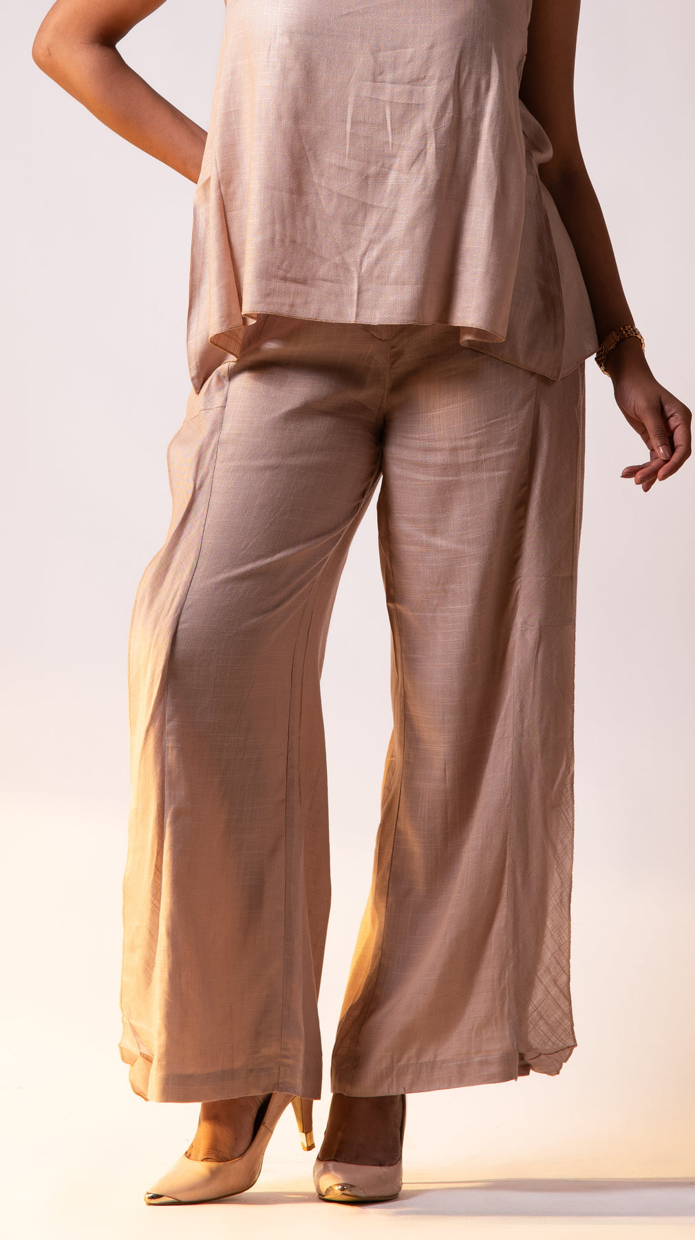- The light, earthy beige colour of the set is versatile and calming, enhancing the outfit's connection to natural elements. This neutral palette allows for easy accessorizing with either bold or understated jewellery.