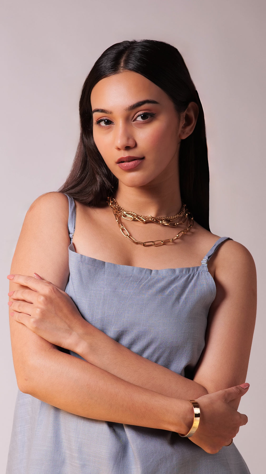 - The light, sky blue colour of the set is versatile and calming, enhancing the outfit's connection to natural elements. This neutral palette allows for easy accessorising with either bold or understated jewellery.