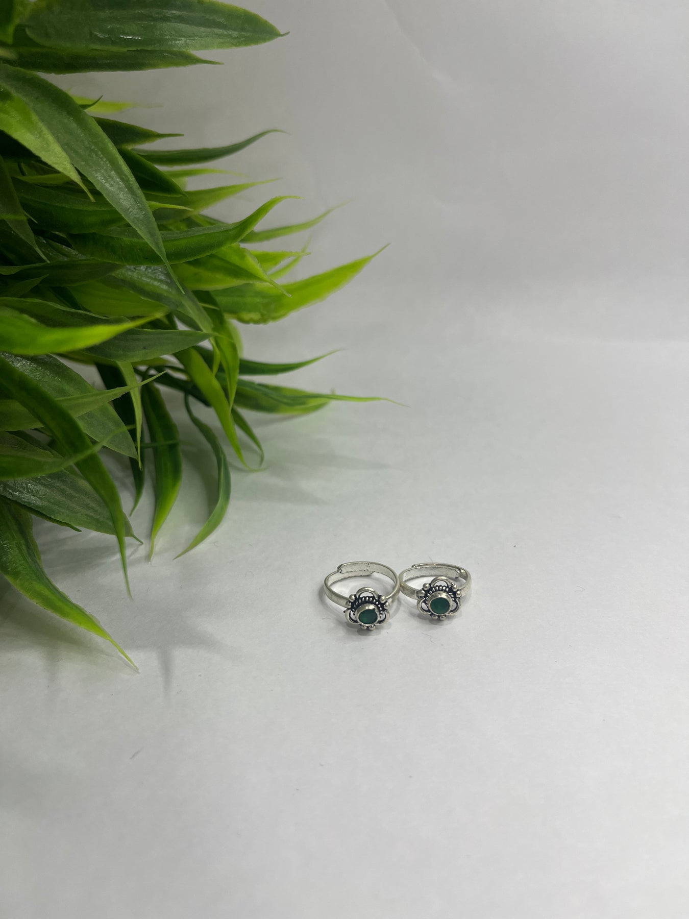 Oxidised 925 Sterling Silver Toe Ring for Her (Emerald Green Stone) - Suspire