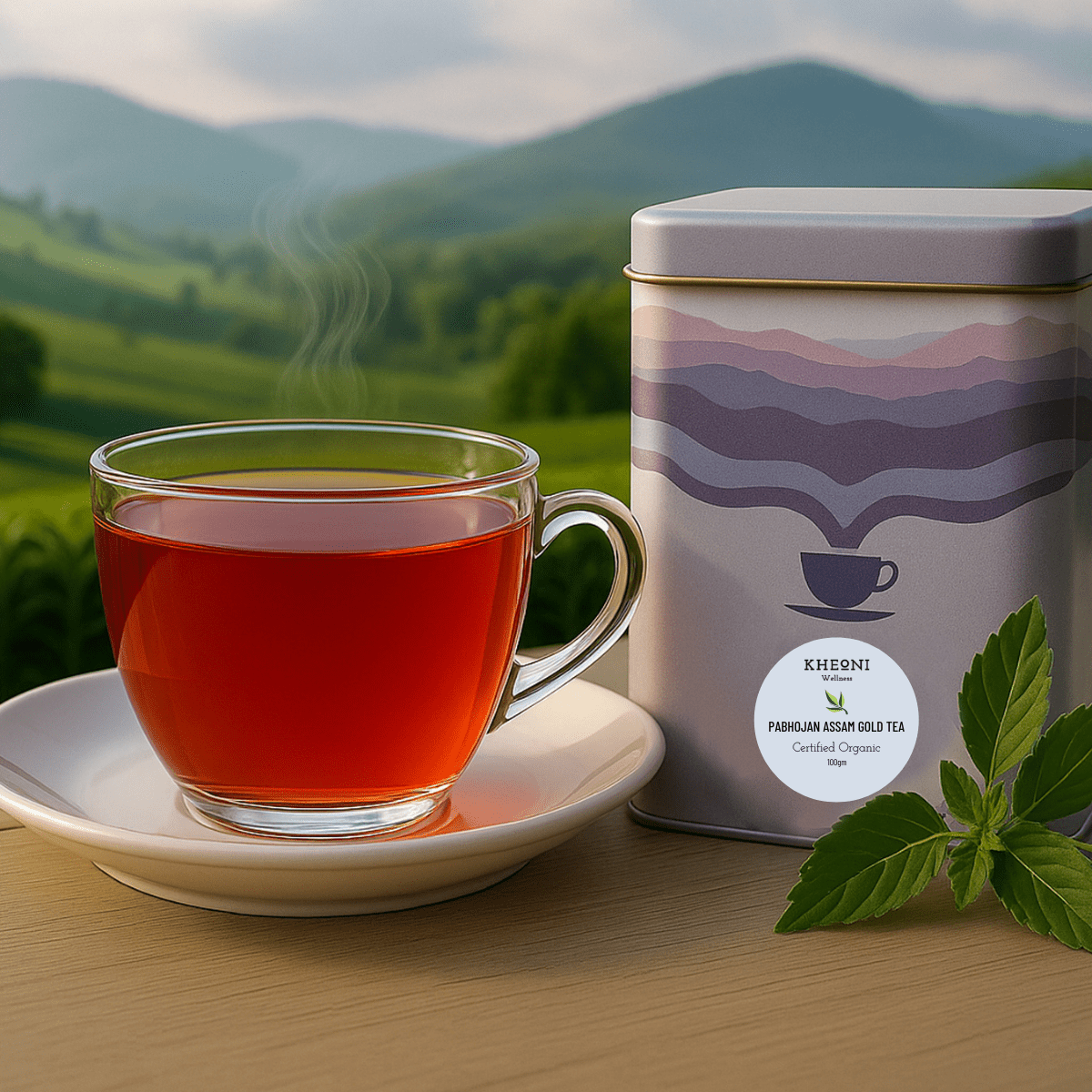 A Premium Quality Pabhojan Assam Gold Tea is handpicked from Pabhojan Organic Tea Estate in the Golaghat district of Assam. Pabhojan Gold Tea brings you a rich combination of aroma and taste of original Assam Tea. This tea is your best bet to start mornings peacefully, even during work hours or at night. A cup of this tea is just the kick you need.