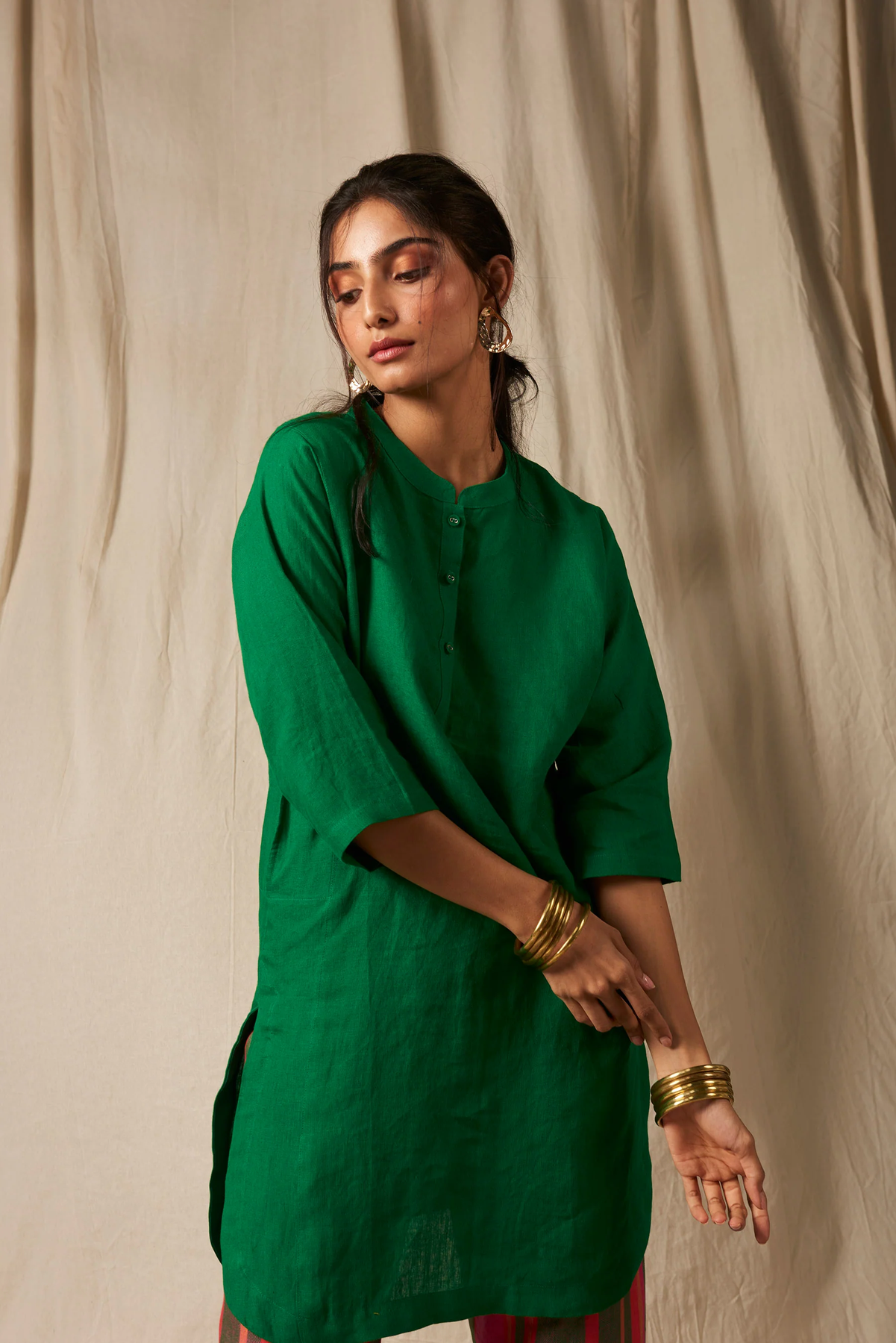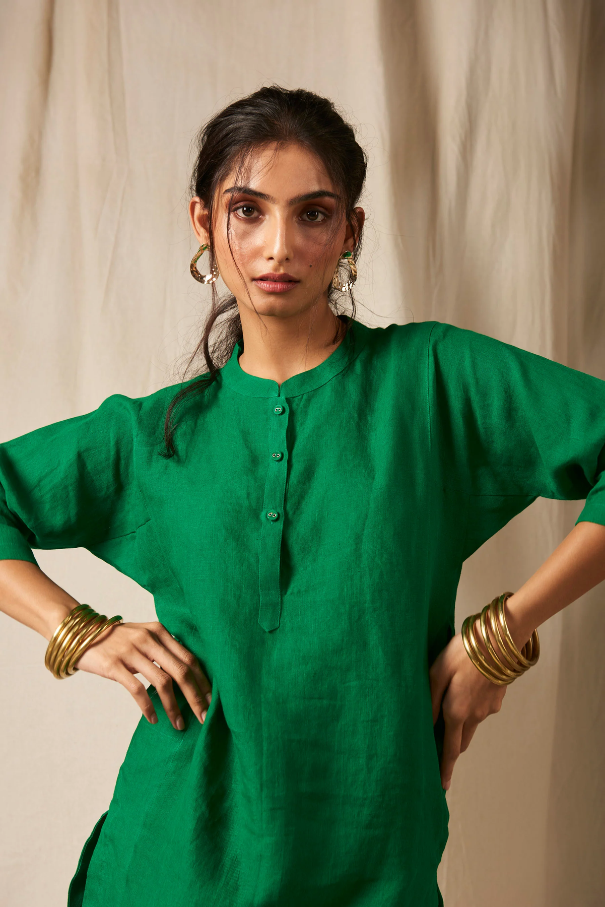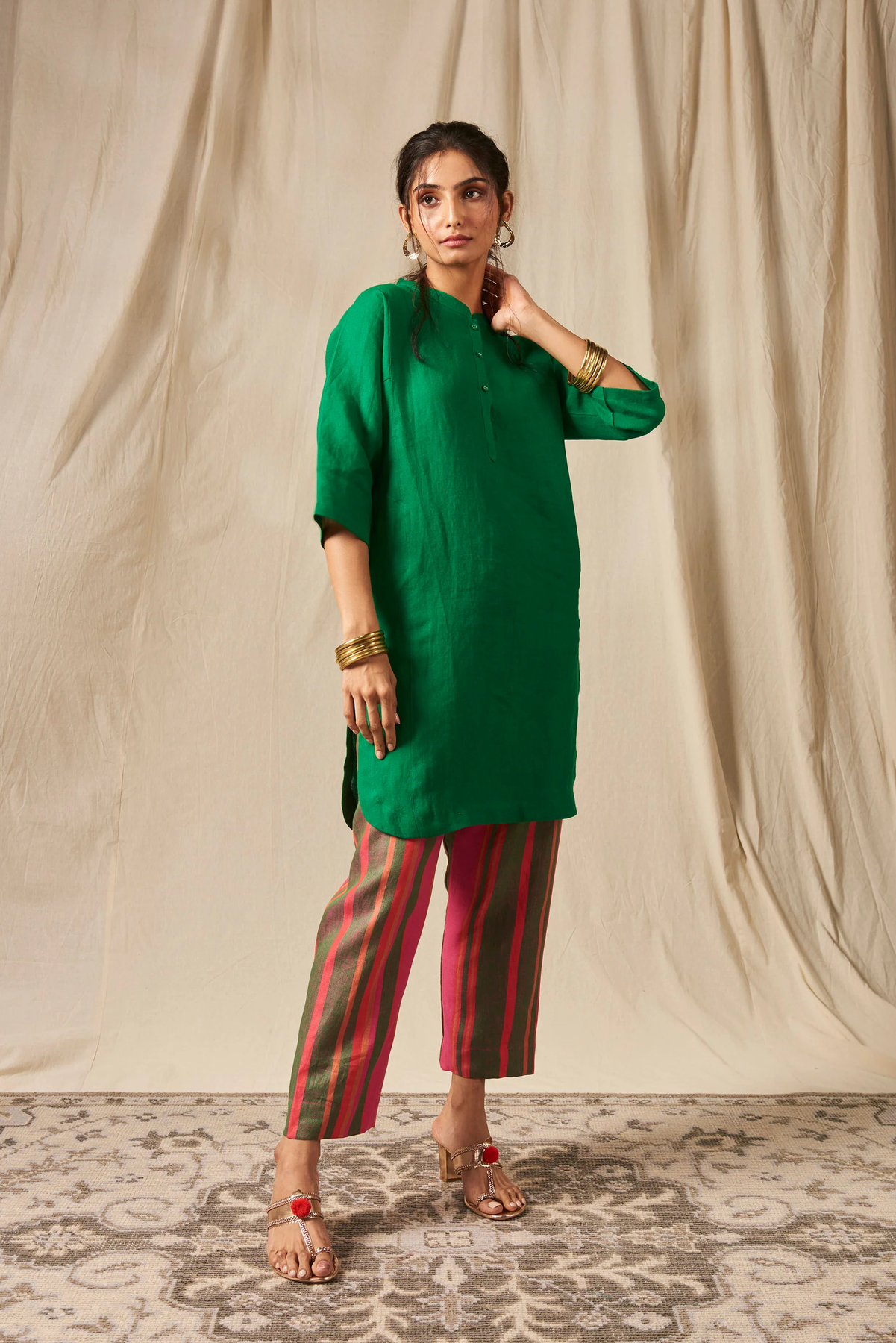 The Panelled Kurta set crafted in pure linen is a quintessential Indian silhouette with a multidimensional kurta and band collar as signature elements. A must-have for the Festive season, wear it for Diwali pooja and other evening functions. Complete with side pockets for functionality, this is a contemporary take on a traditional attire.
