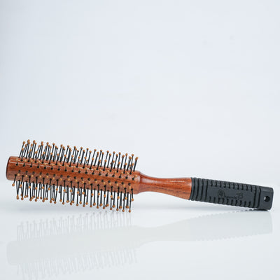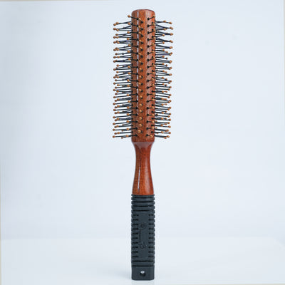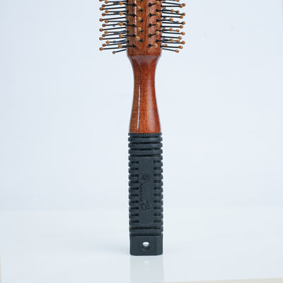 The rubber handle of our Hair Roller Brush ensures a comfortable and secure grip during every styling session. Its ergonomic design reduces hand strain and provides excellent control, facilitating effortless and precise hairstyling. Crafted from sustainably sourced papdi wood, this hair brush features nylon bristles carefully selected for their gentle yet effective detangling abilities, minimizing breakage and damage to your hair. Our Papdi Wood Roller Hair Brush also promotes scalp health and enhances hair vitality.