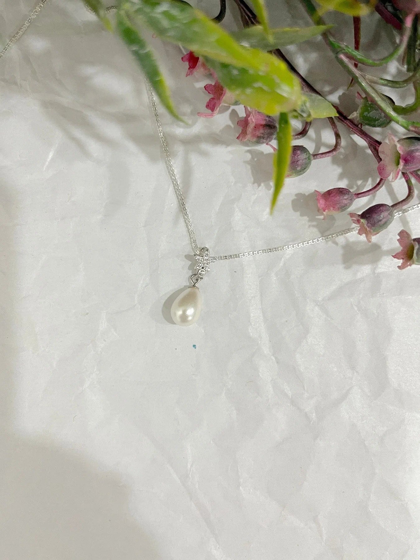 Pearly Bloom Silver Ear Rings and Pendant Set - Suspire