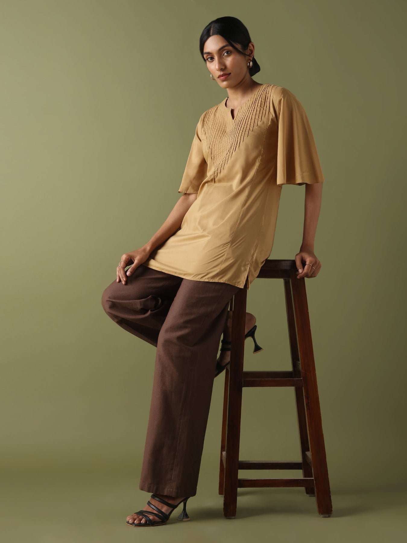 Dhwani Choksi Pin Tucks Tunic - Beige - Suspire