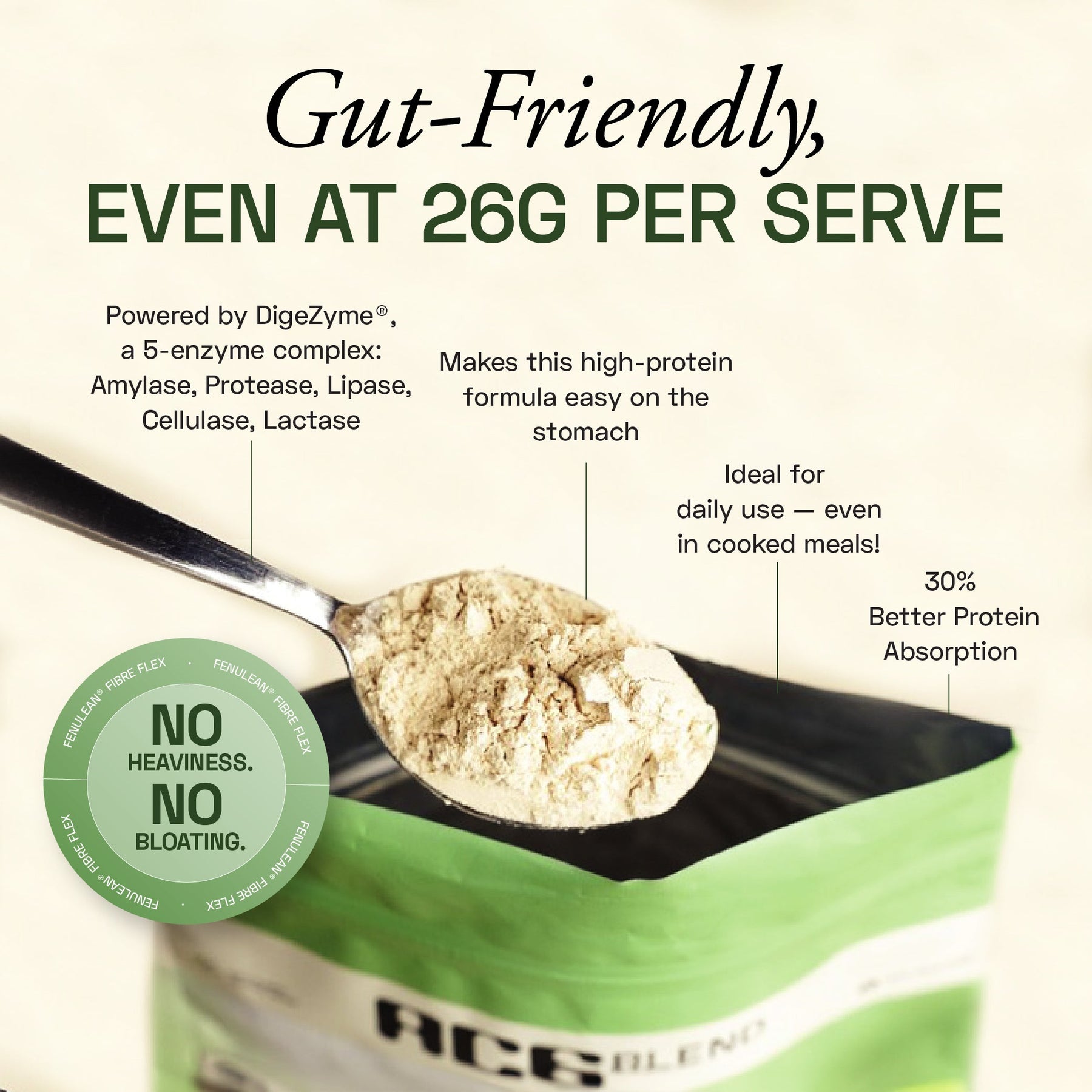 Meet the invisible ally that's here to rev up your protein intake! Neutral in taste and potent in composition, our triple complex plant protein boasts an unrivaled essential amino acid profile. Expect 26g of no flavour and all health in every scoop. Don't change your routine or your favourite meals. Just mix into your meals, desserts, smoothies to power up your plate. Its versatility is as vast as your imagination.