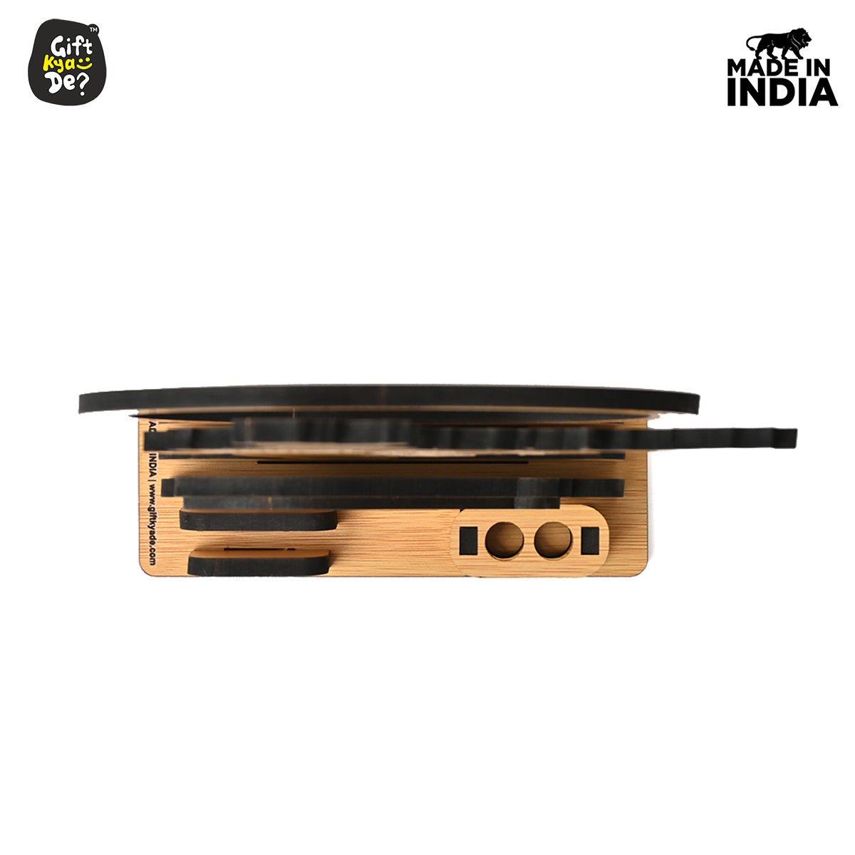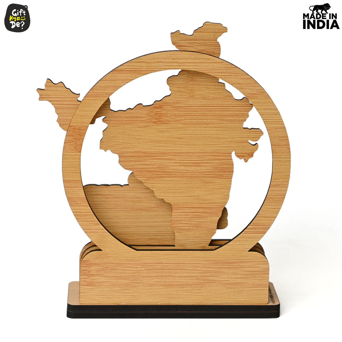 Gift Kya De Wooden hand-made desk organizer is not only good for classifying the items, but also is beautiful and artistic with photo and India Map with dine laser cut finish and is used as desk organizer for study table.