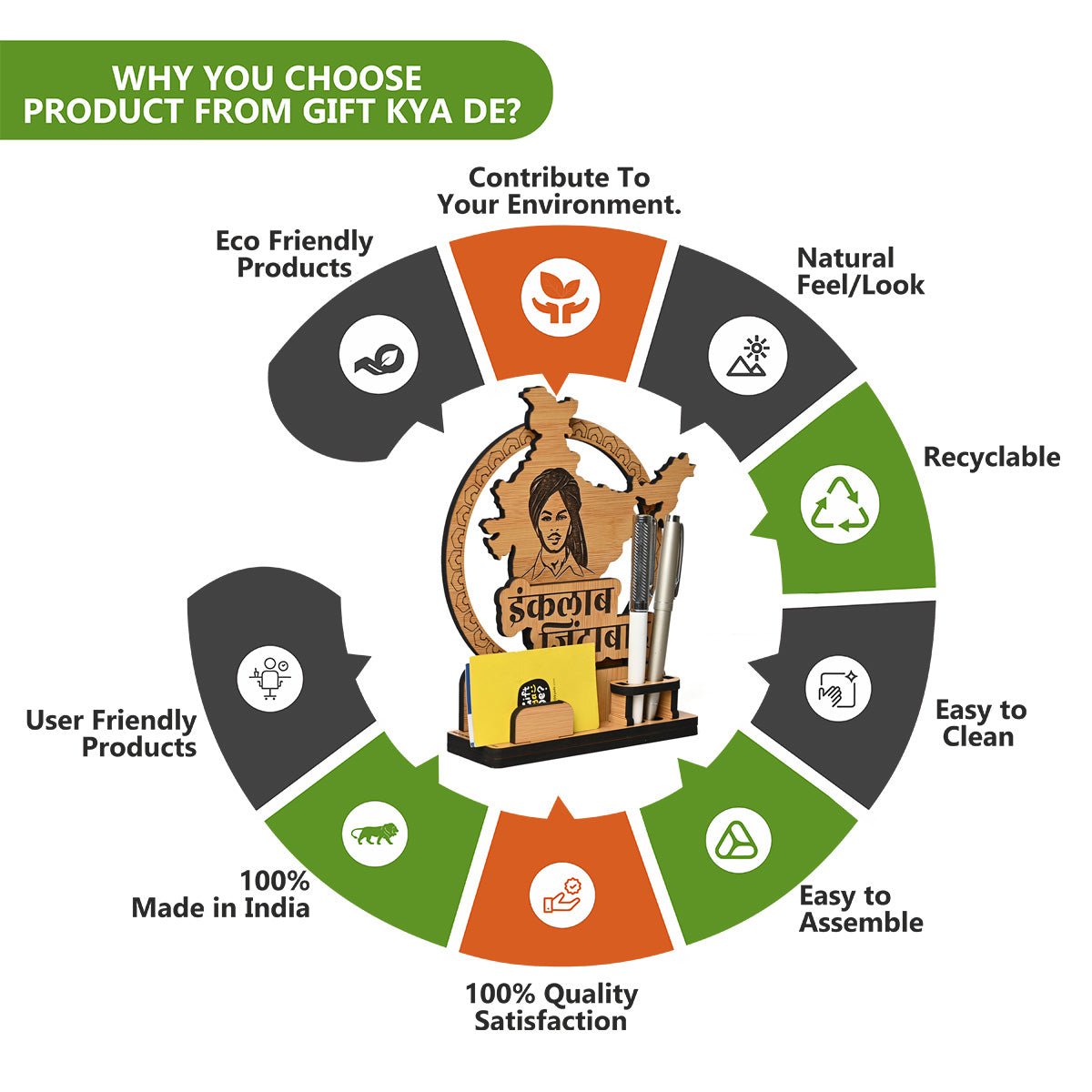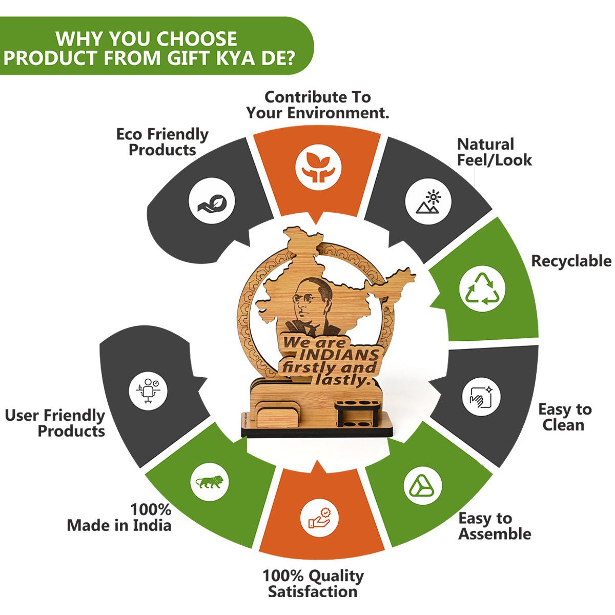 Gift Kya De Political Pen Stand and Card Holder | Gandhi Ji, Ambedkar Ji & Bhagat Singh Ji  | Wise Quotes | Mementos