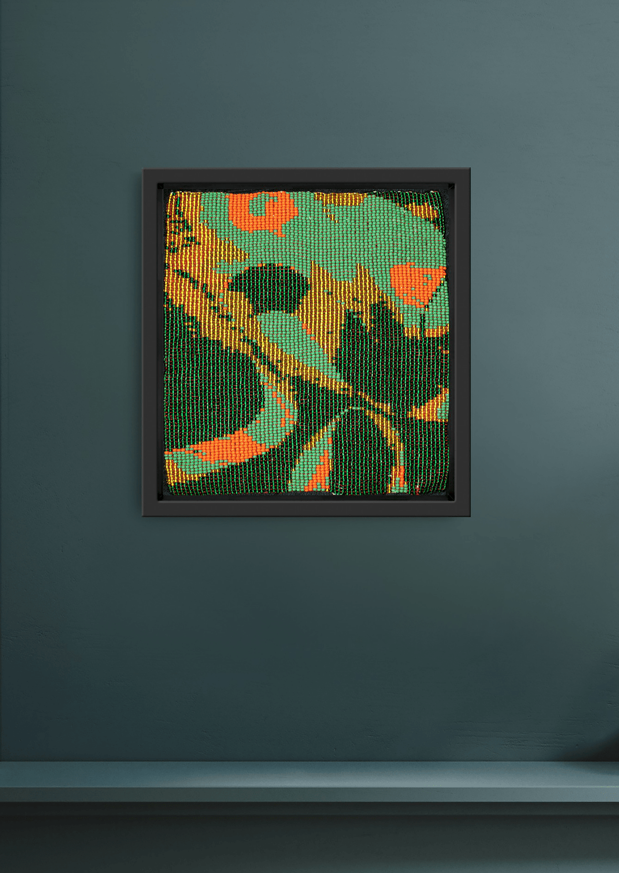 About the Collection: Handwoven on simple wooden looms by artisans in Bhavnagar, Gujarat, this piece embodies India’s fading bead-loom tradition. Tiny glass beads are woven into intricate patterns inspired by nature and geometry, preserving a craft once used to create torans that symbolized welcome and good fortune. Each artwork tells a quiet story — a meditative play of texture, light, and patience.