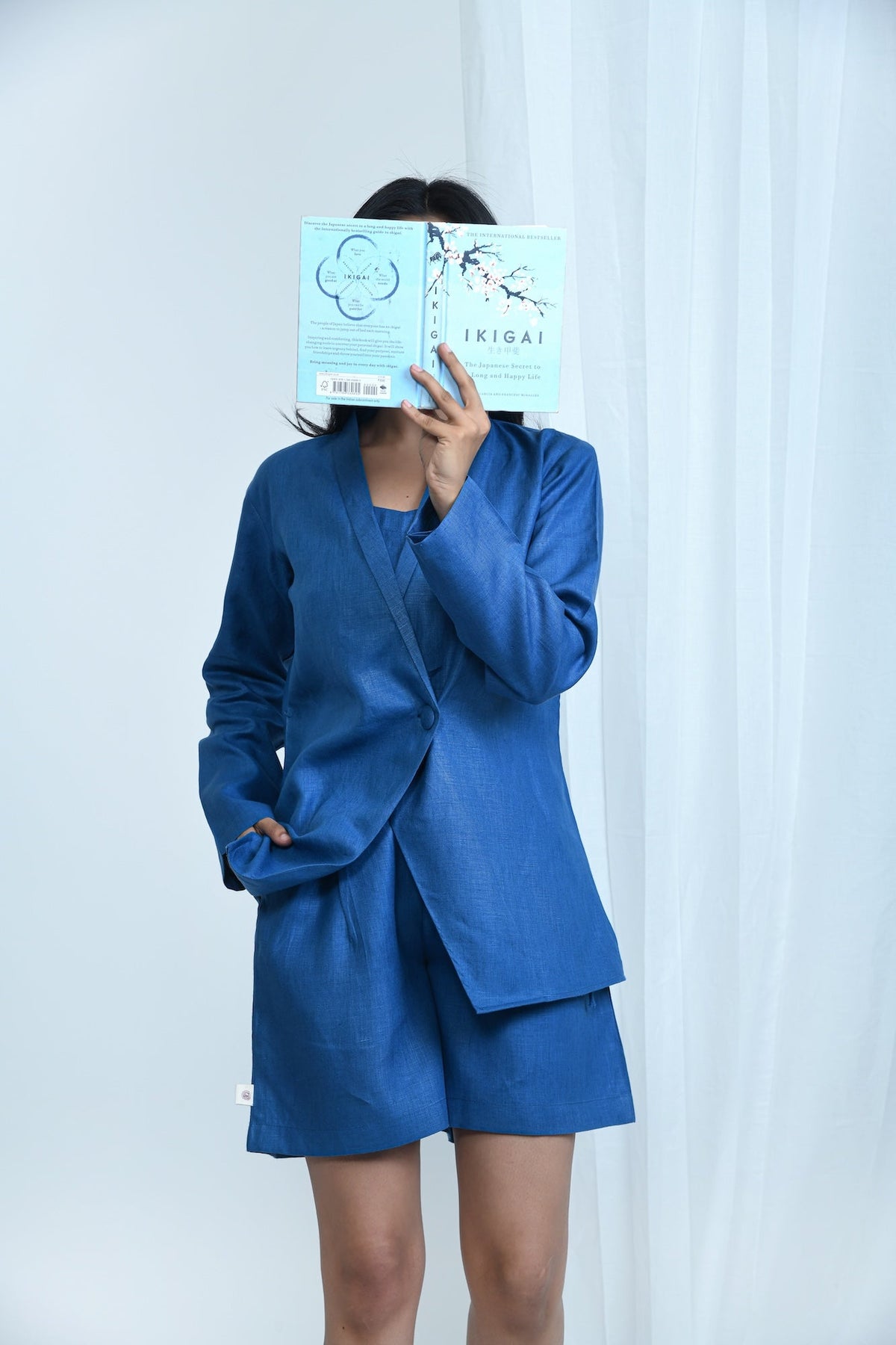 Pravaah Pure Hemp Crop Blazer | Lightweight | Office wear | Blueberry