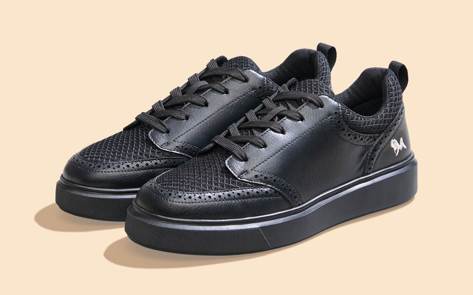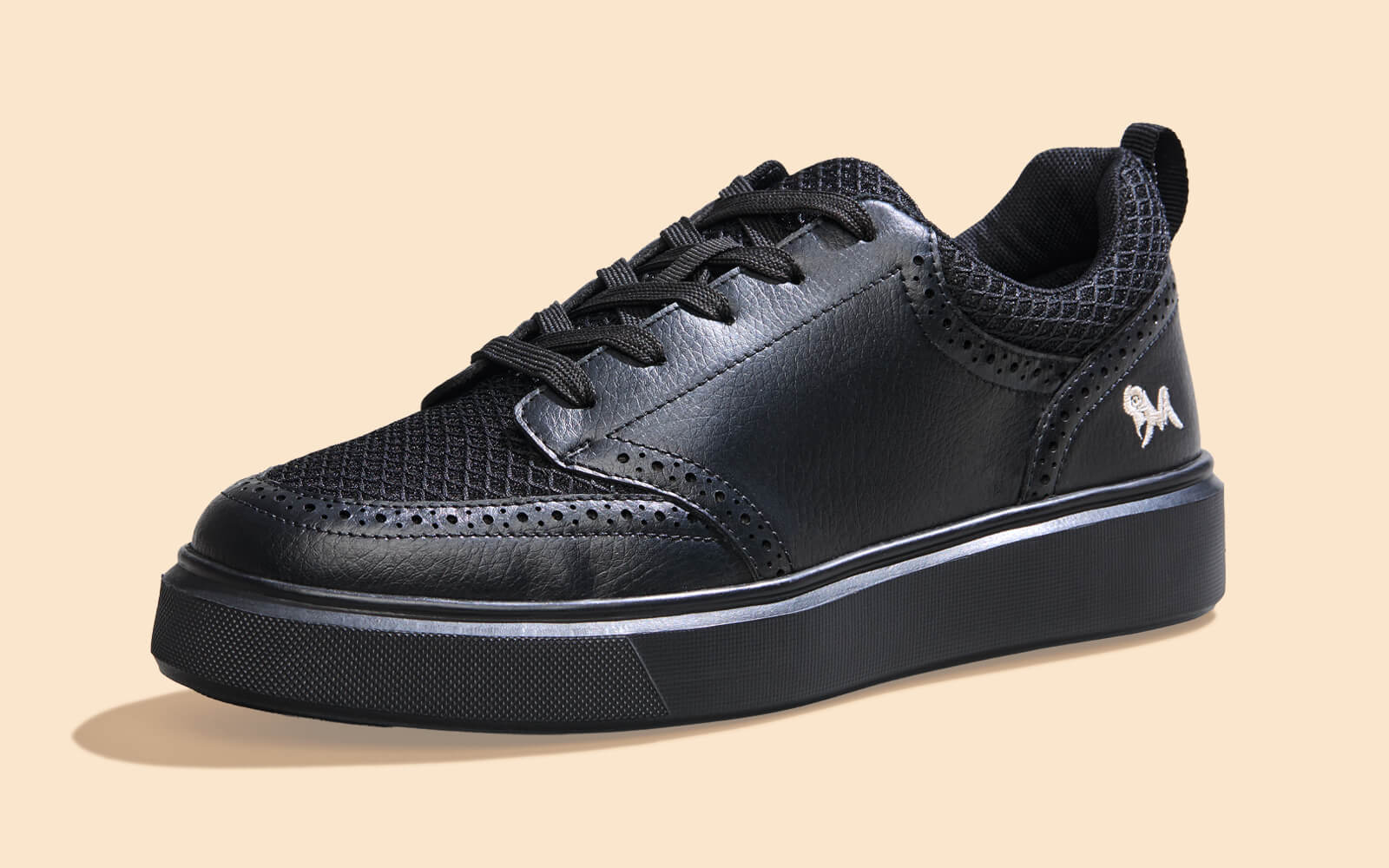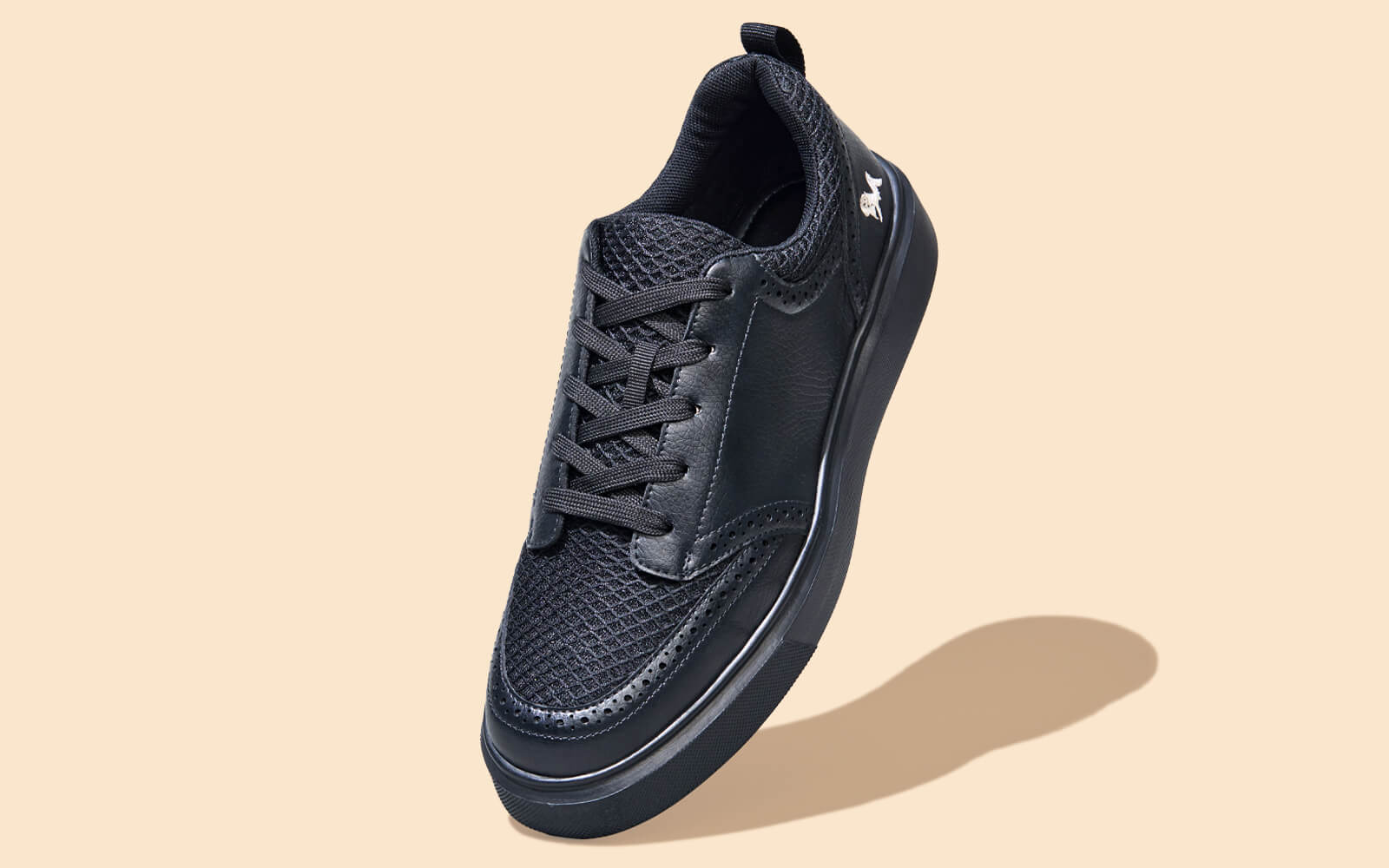 Textured faux leather meets mesh-knit ease in a silhouette that flexes between casual and smart casuals. With dual-layered cushioning, soft mesh lining for sweat control, and a padded collar for extra stability, the Pure Motion sneaker is movement refined.