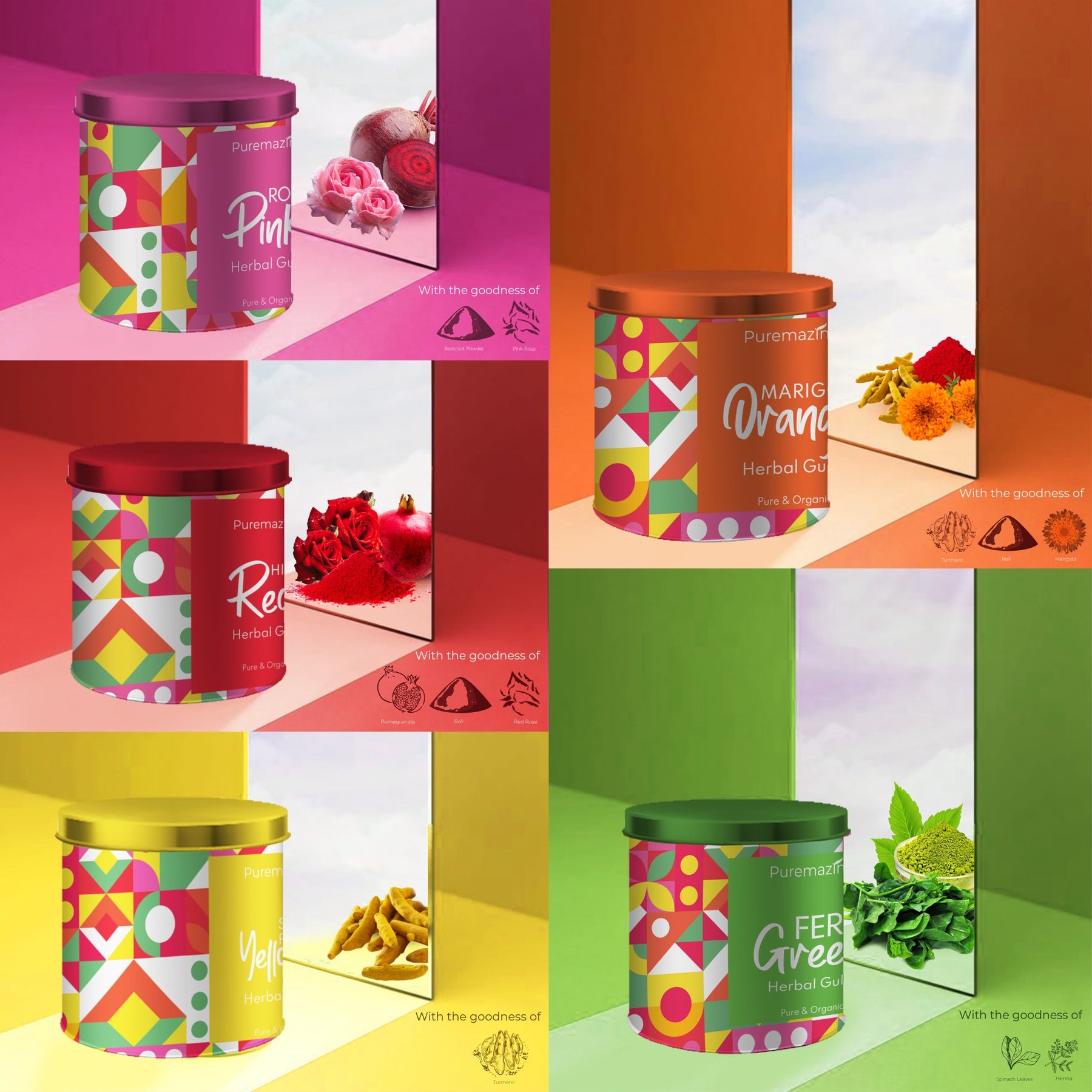 • In the Box: Puremazing by Imvelo Red, Yellow, Orange, Pink, Green Holi Colors Gift Set (Pack of 5, 80 Grams Each)