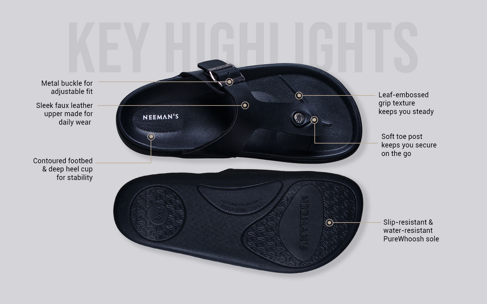 This isn’t just another sandal. With a sleek faux leather upper, a sharp adjustable buckle, and our all-new PureWhoosh sole, the PureWoosh Breeze delivers next-level support in a minimalist frame. Expect a contoured footbed, ergonomic cushioning, and a slip-resistant, waterproof base that keeps up with every plan, puddle, and pause.
