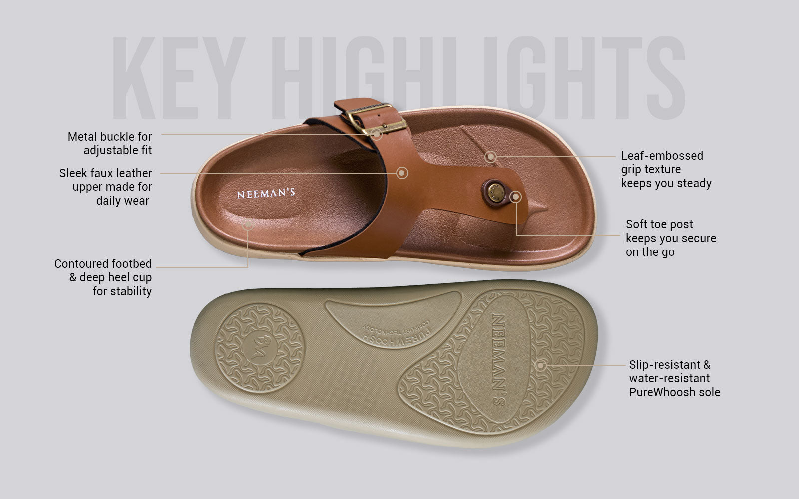 This isn’t just another sandal. With a sleek faux leather upper, a sharp adjustable buckle, and our all-new PureWhoosh sole, the PureWoosh Breeze delivers next-level support in a minimalist frame. Expect a contoured footbed, ergonomic cushioning, and a slip-resistant, waterproof base that keeps up with every plan, puddle, and pause.