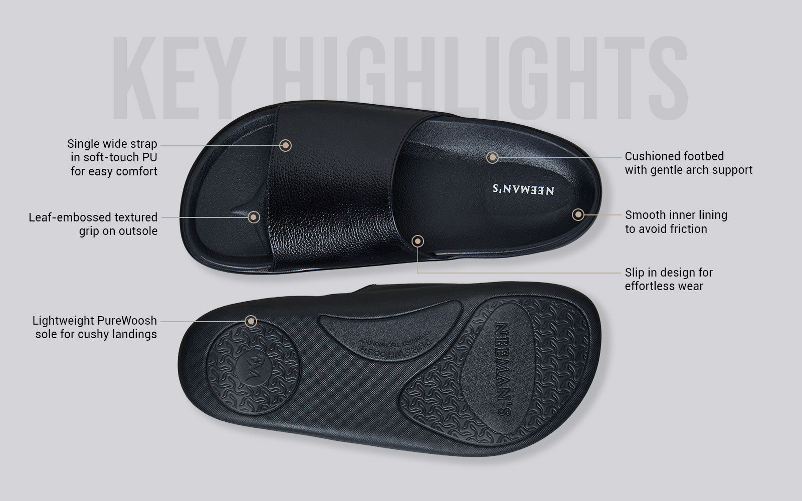 Slide into chill mode with Neeman’s PureWoosh Glide. This one-band style combines effortless minimalism with full-on comfort—featuring soft sidewalls, a contoured footbed, and our waterproof PureWoosh sole. It’s the go-to for slow weekends, surprise showers, and everyday ease. No straps, no stress—just pure Neeman’s comfort.