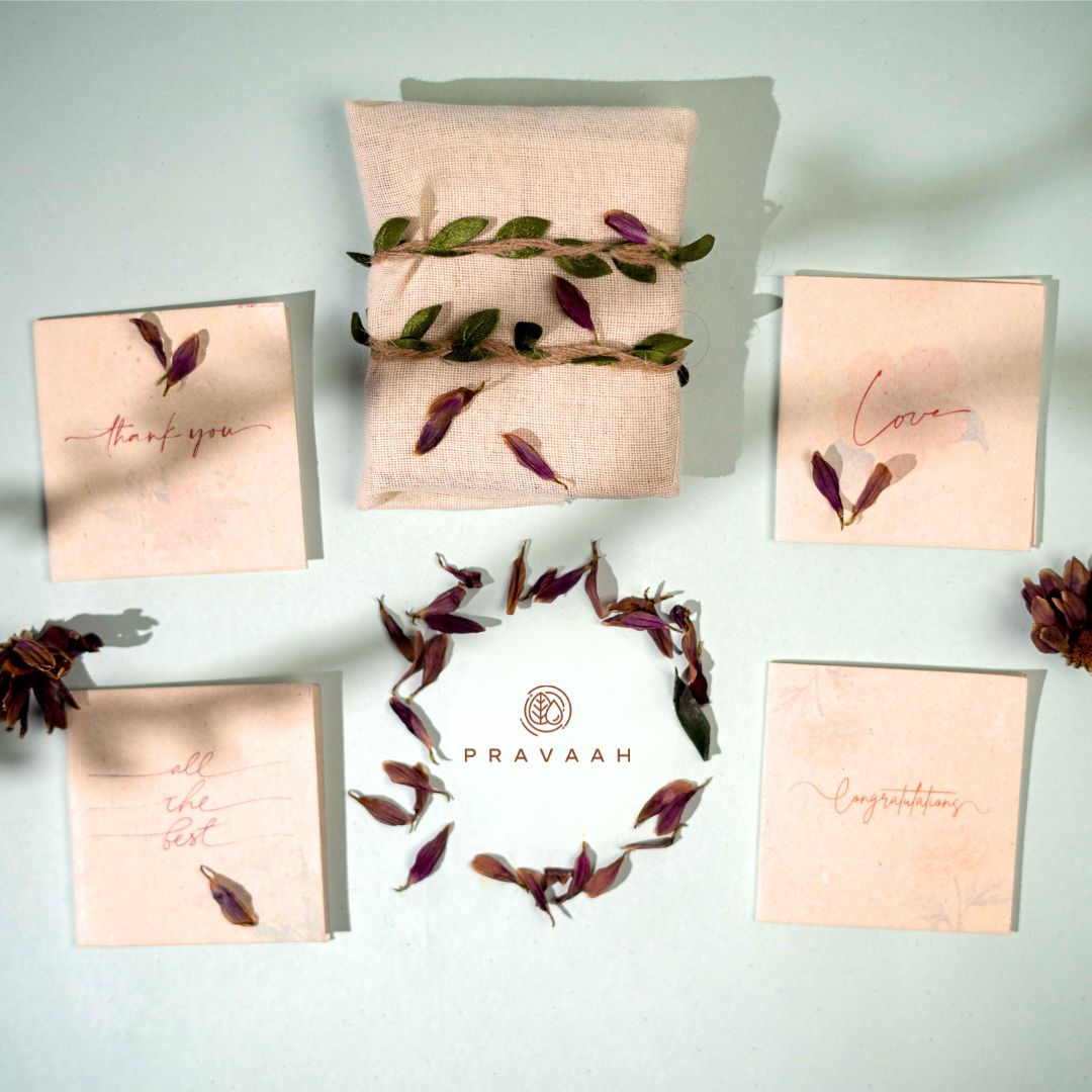 Pravaah Pushp Hemp Paper Gift Cards | Set of 5 Cards and Envelopes