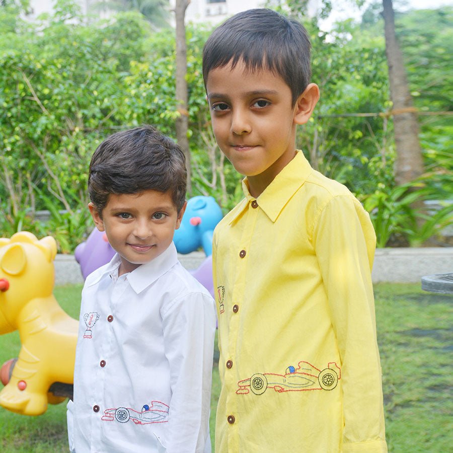 Vroom away in our super race car shirt and stand out like a winner! Stylize the shirt with trousers, or roll up the sleeves & team it with denims or shorts for a smart-casual look. Made from high-quality, breathable organic cotton fabric, this shirt ensures comfort for your child.ξ