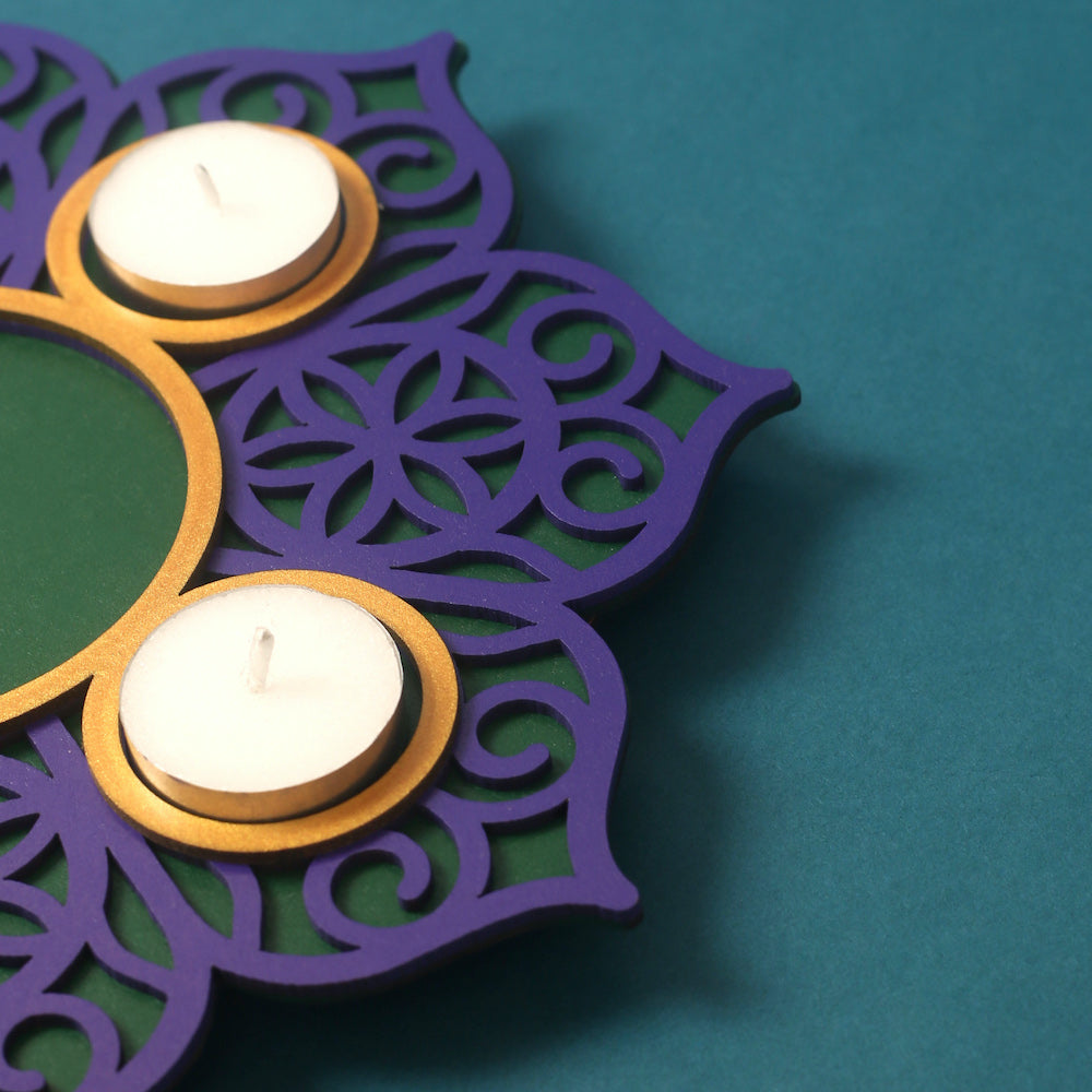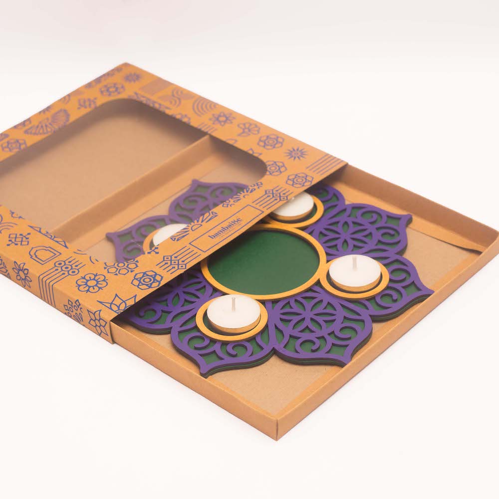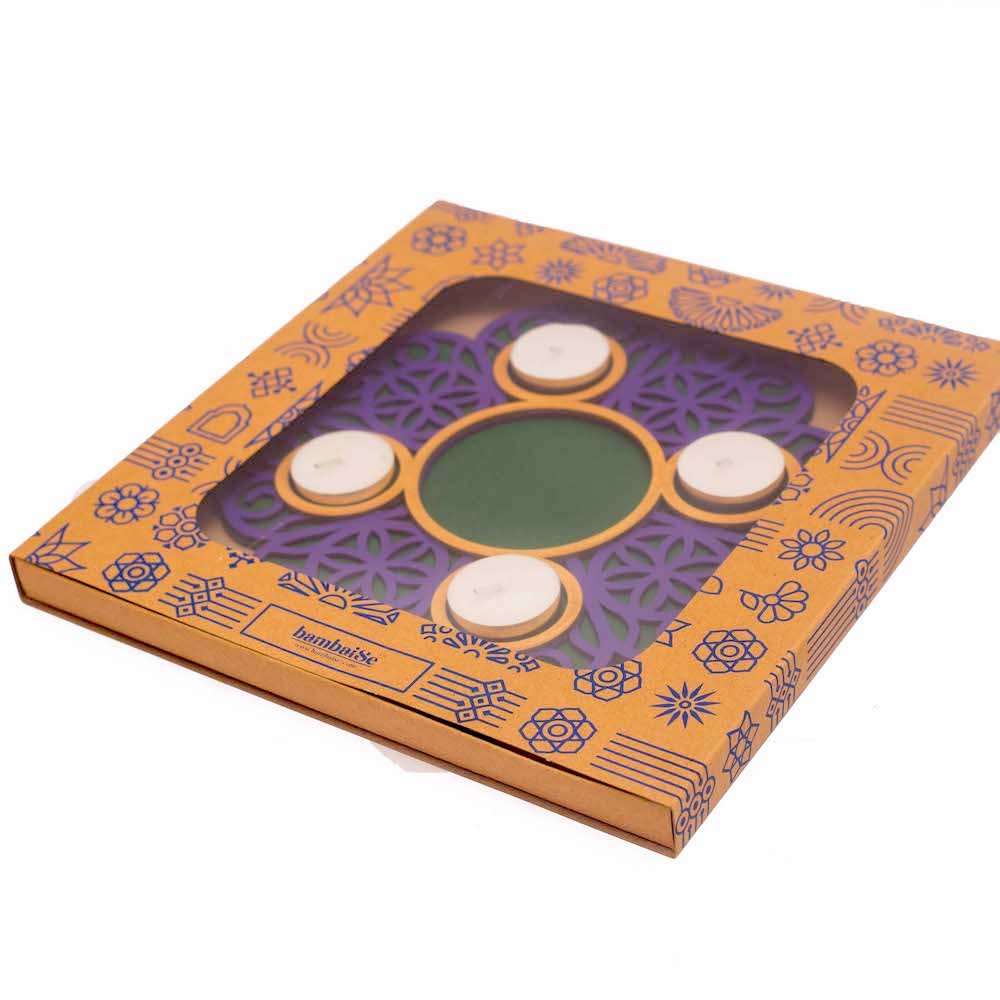 Bring in festivals with our easy to use Rangoli T-light Décor. Handcrafted & Designed by bambaiSe with the Art of Mandala using festival rich colours.